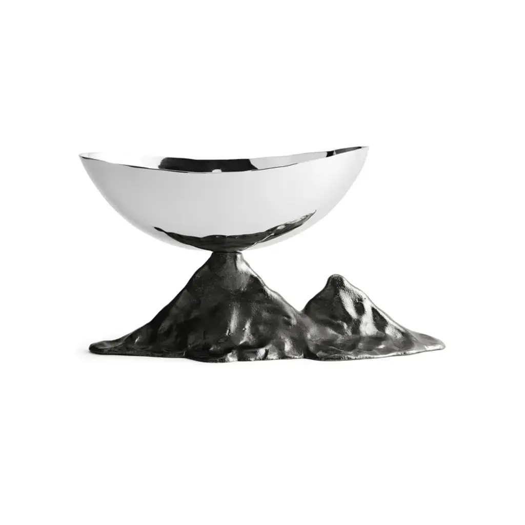 Oval Pedestal Resin Bowl, Smoke And Black Pearl By Paola Valle