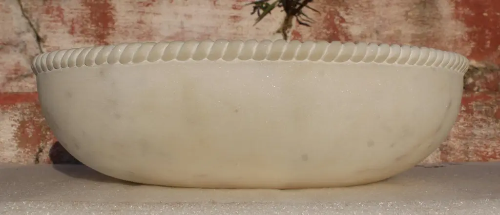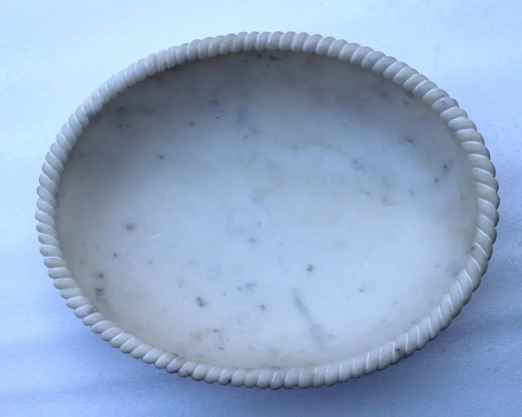 Sculpted out of a single block of marble with a delicately carved rope edge, perfect for a potpourri, a fruit bowl or just a key catch.Oval Rope BowlSize- 14” x 11” x 4” HMaterials - Marble, Hand-CarvedBuyer Cancellation-The cancellation charge is 25% which increases to 50% if the production is started.Prices do not include shipping from India (for custom orders) or our MN warehouse (items from stock). That will be additional.Customization is our specialty. Please do not hesitate to get in touch with us for any queries regarding size, material or design customization.