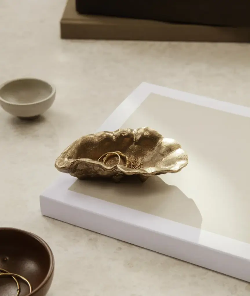 Originally casted from a real oyster shell, this elegant little bowl is a decorative place to store burnt matches, jewelry or other precious little knick-knacks. Beautifully detailed and made from 100% brass, the solid metal presents a lovely contrast to the bowl’s natural, organic form.
