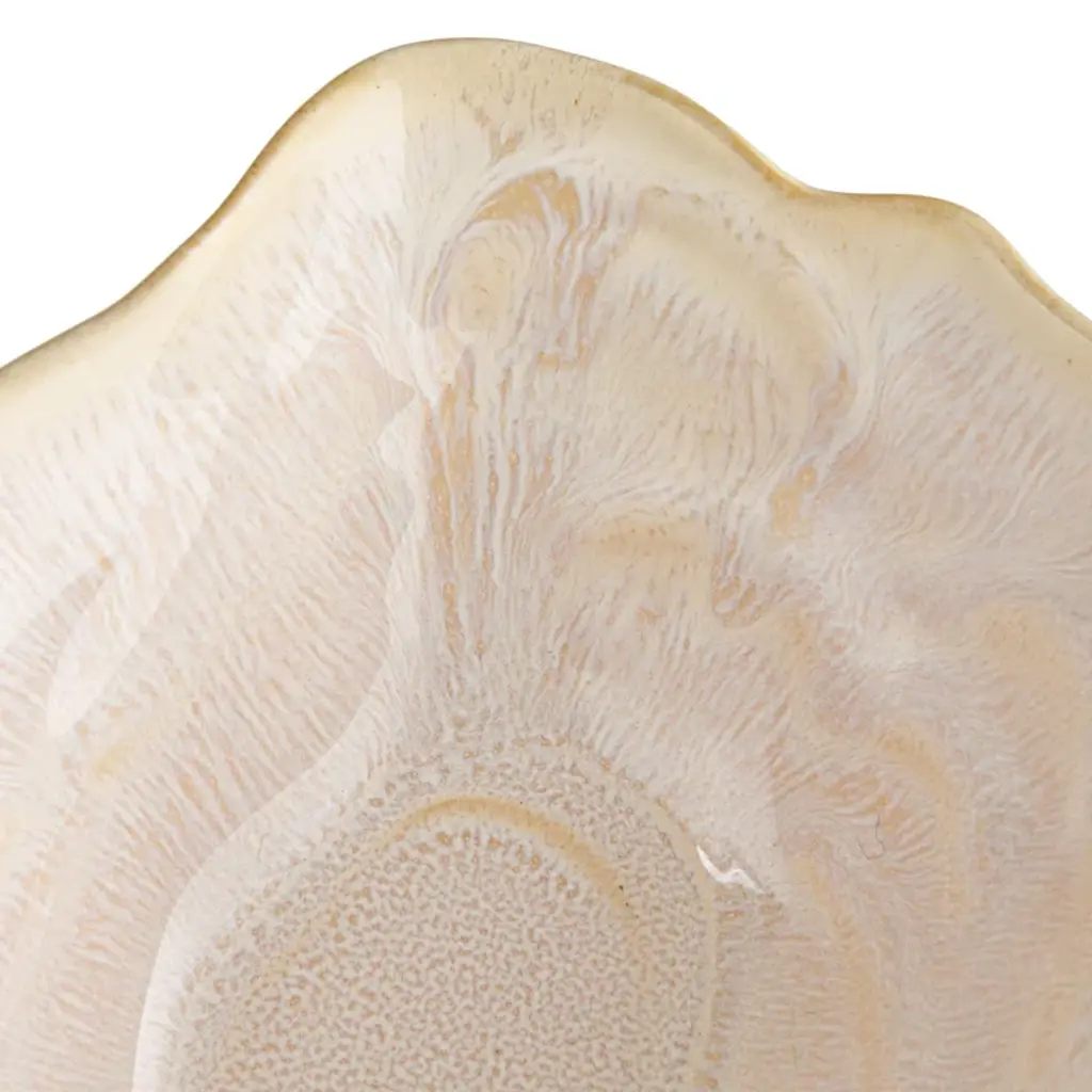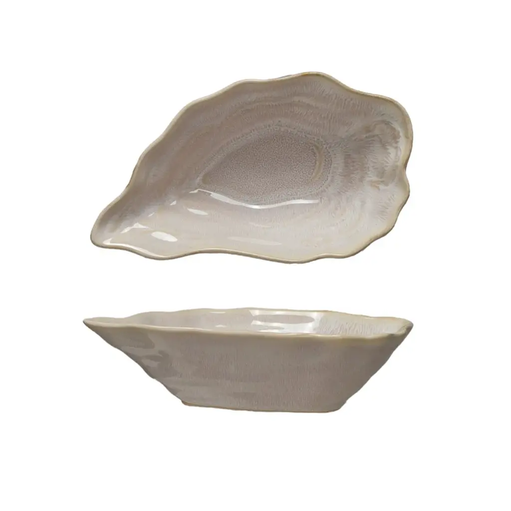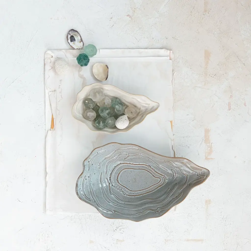 This Stoneware Oyster Bowl is a tribute to the timeless beauty of the ocean. Crafted with care from cream stoneware, its surface is as smooth as sand polished by the tide. The bowl's oval form and understated elegance invite thoughts of quiet beaches and the soft murmur of waves. It's a piece that doesn't just serve—it tells a story—one of morning walks by the shore and the joy of finding a perfect shell. It measures 7.75 inches in length and 2 inches in height, its generous proportions make it perfect for both display and use. Whether filled with fruits, floating candles, or simply left empty, it stands as a symbol of life's simple pleasures, a reminder of the peace that can be found in nature's embrace. It's not just a bowl; it's a piece of the coast brought into the heart of the home.