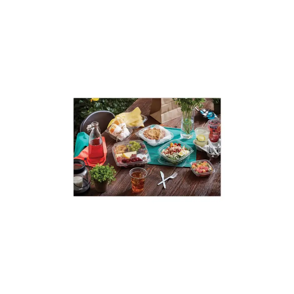 This Pactiv Evergreen EarthChoice Square Recycled Bowl is constructed of flexible, hard-to-crack PET material. Made with post consumer recycled drink bottles which helps reduce landfill waste. It has leak resistant bases and are also stackable for convenient storage and easy transportation. Ideal for applications -20°F to 120°F. For use with EarthCoice PET lids.