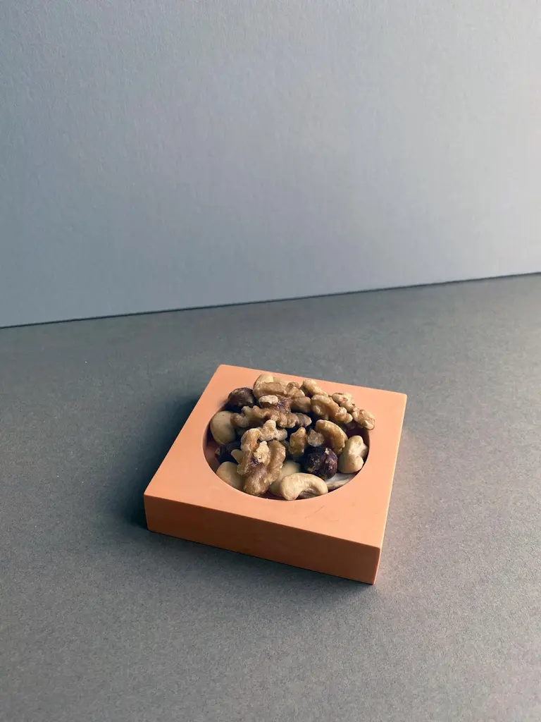Peach bowl mould Project by Theodora AlfredsdottirUniqueMaterials: JesmoniteDimensions: 110 x 110 x 25 mmTheodora Alfredsdottir is a product design studio based in London. Theodora is an Icelandic product designer. She holds a bachelor’s degree in product design from the Iceland Academy of the Arts (2012) and a master’s degree in Design Products from the Royal College of Art in London (2015).Storytelling through objects; Theodora’s work revolves around the narrative an object can inhabit and exploring ways of objectifying that narrative. She's interested in the way an object can act as documentation of its manufacturing process; a record of what went on between the machine, tools, craftsman and Material as well as it can communicate its origin and former life. In short, the object creates its own factual narrative. That often leads to the discovery of unexpected qualities as well as it gives the user a subtle opportunity to reconsider our Material world and explore value in a different way.