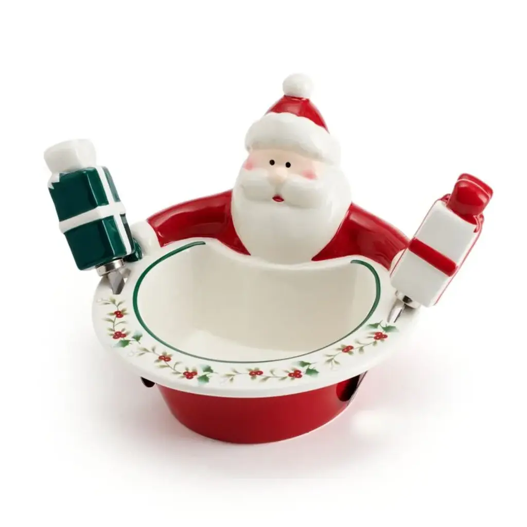 Pfaltzgraff Winterberry Santa Dip Bowl With Spreaders, 6 Inch - Multi - 3 Piece