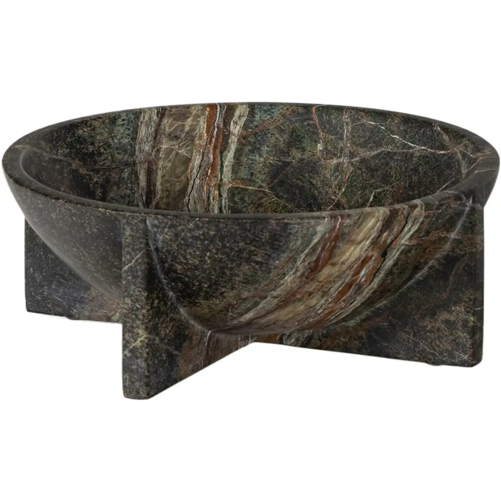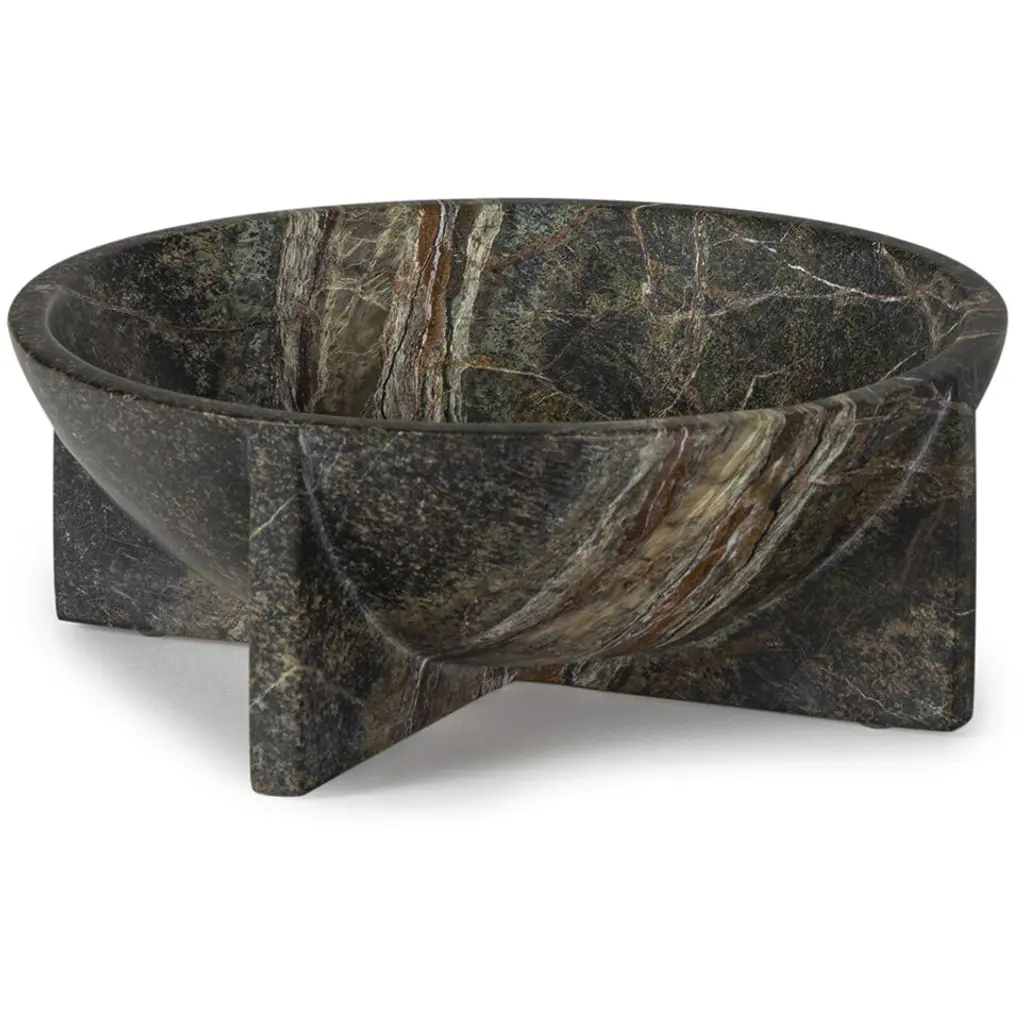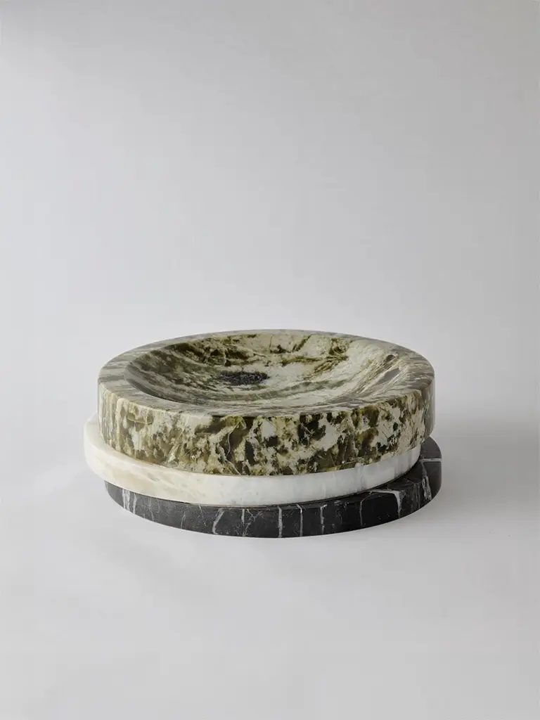 To juxtapose marble’s natural veining, the Pila Bowl references the work of modernist architect Paul Rudolph. Reflecting the tension between built and organic forms in contemporary design, this stacked bowl showcases a tonal mix of different natural marbles.Influenced by biomorphic design, the Pietra series is comprised of objects inspired by naturally occurring shapes and textures. The result is a collection of refined yet tactile objects that enhance a space with effortless sophistication.Materials: Irish Green, Blue Onyx, & VerdeDimensions: L23 x W23 x H6cm / L9 x W9 x H2.3”Marble is a naturally occurring material, each piece may vary slightly in appearance. These are not faults, they are the details that make each purchase wonderfully unique.