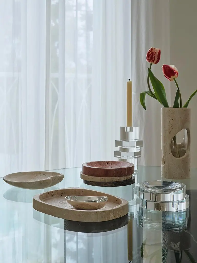 To juxtapose marble’s natural veining, the Pila Bowl references the work of modernist architect Paul Rudolph. Reflecting the tension between built and organic forms in contemporary design, this stacked bowl showcases a tonal mix of different natural marbles.Influenced by biomorphic design, the Pietra series is comprised of objects inspired by naturally occurring shapes and textures. The result is a collection of refined yet tactile objects that enhance a space with effortless sophistication.Materials: Red Travertine, Travertine, & EmperadorDimensions: L23 x W23 x H6cm / L9 x W9 x H2.3”Marble is a naturally occurring material, each piece may vary slightly in appearance. These are not faults, they are the details that make each purchase wonderfully unique.