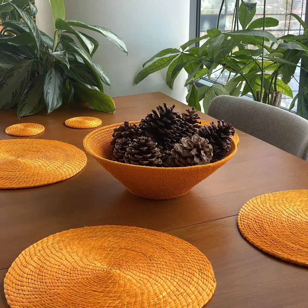 This Decorative Bowl is an exquisite centerpiece meticulously crafted in Swaziland. Handwoven using all-natural materials and non-toxic dyes, this modern decorative bowl seamlessly blends traditional craftsmanship with contemporary elegance. The pink modern decorative bowl serves as a versatile addition to your kitchen, holding fruit or home accessories.