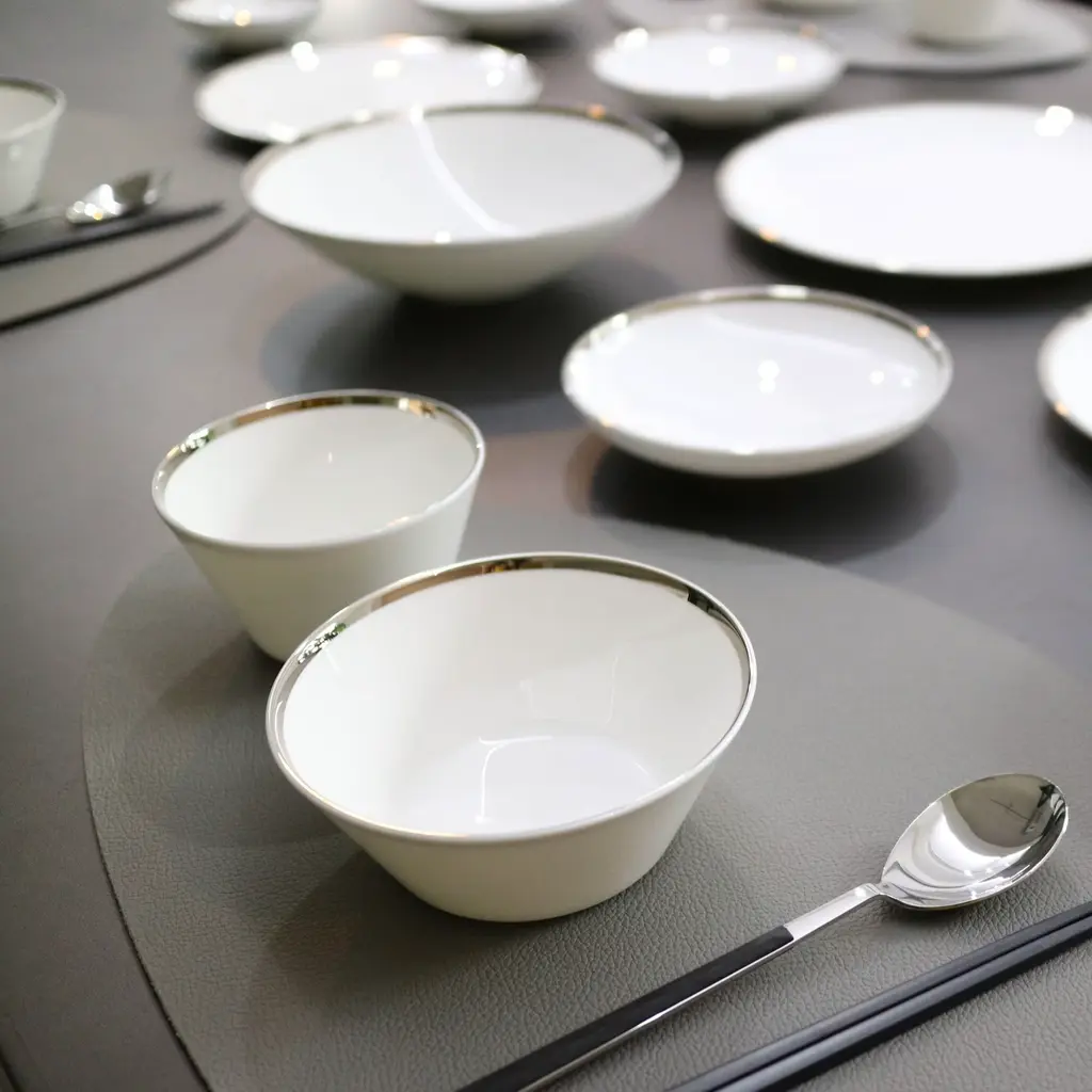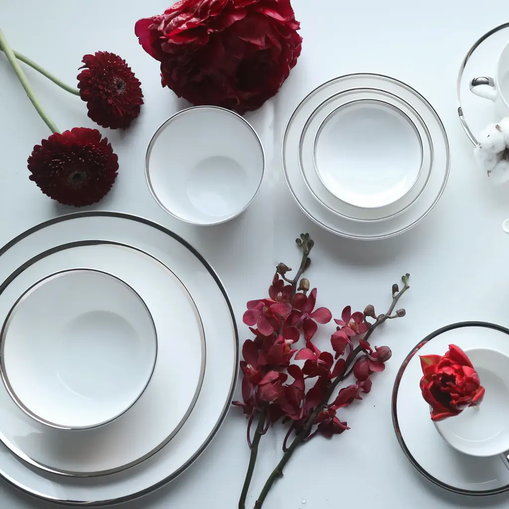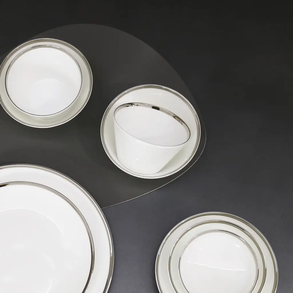 A classically inspired collection which combines the majestic look of Platinum with the purity of Fine Bone China. The edges in this collection are all hand-painted. This collection has been designed with sophistication and minimalism as our inspirations. With contemporary shapes and a complete collection to choose from, we offer elegance and modernity from the Platinum Edge Collection by Twig New York.Ideal for fruit, nuts, and riceOne bowl per boxFine Bone China with hand-painted Platinum rimDue to hand-painted nature of the process, the gold finish may contain variations and brush strokesPlatinum Edge Collection
