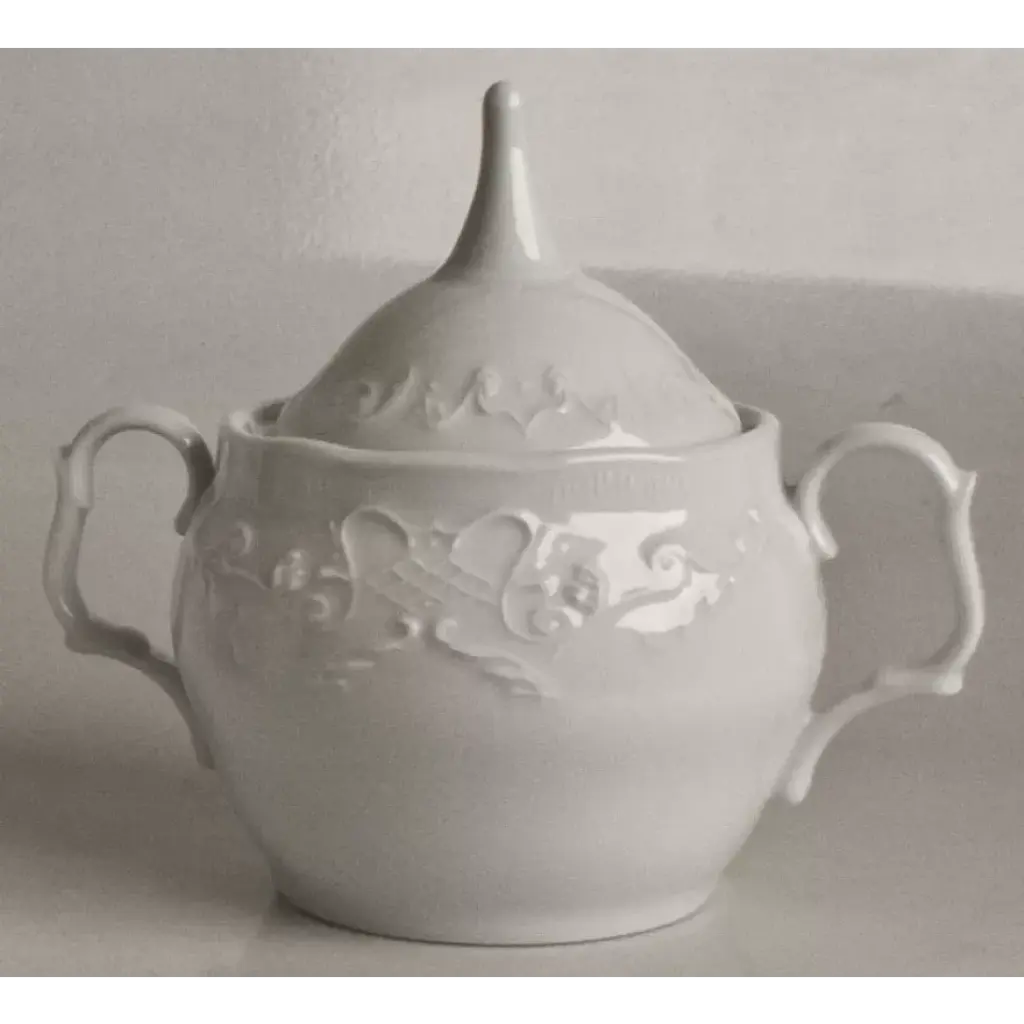 Raynaud's Pont aux Choux dinnerware has the shrubs of this flowering tree set in relief around a series of stylized borders. Five-piece place setting includes dinner plate, salad plate, bread/butter plate, teacup, and saucer. Raynaud was established in 1849 and is the only survivor of 11 porcelain factories existing in Limoges, France. After years of research, Raynaud discovered techniques to create infinite combinations of fade-resistant decorations that is still used by porcelain makers. Boasting a client list of numerous presidents to Princess Diana, Raynaud has been the synonym of quality, known and recognized on every continent.