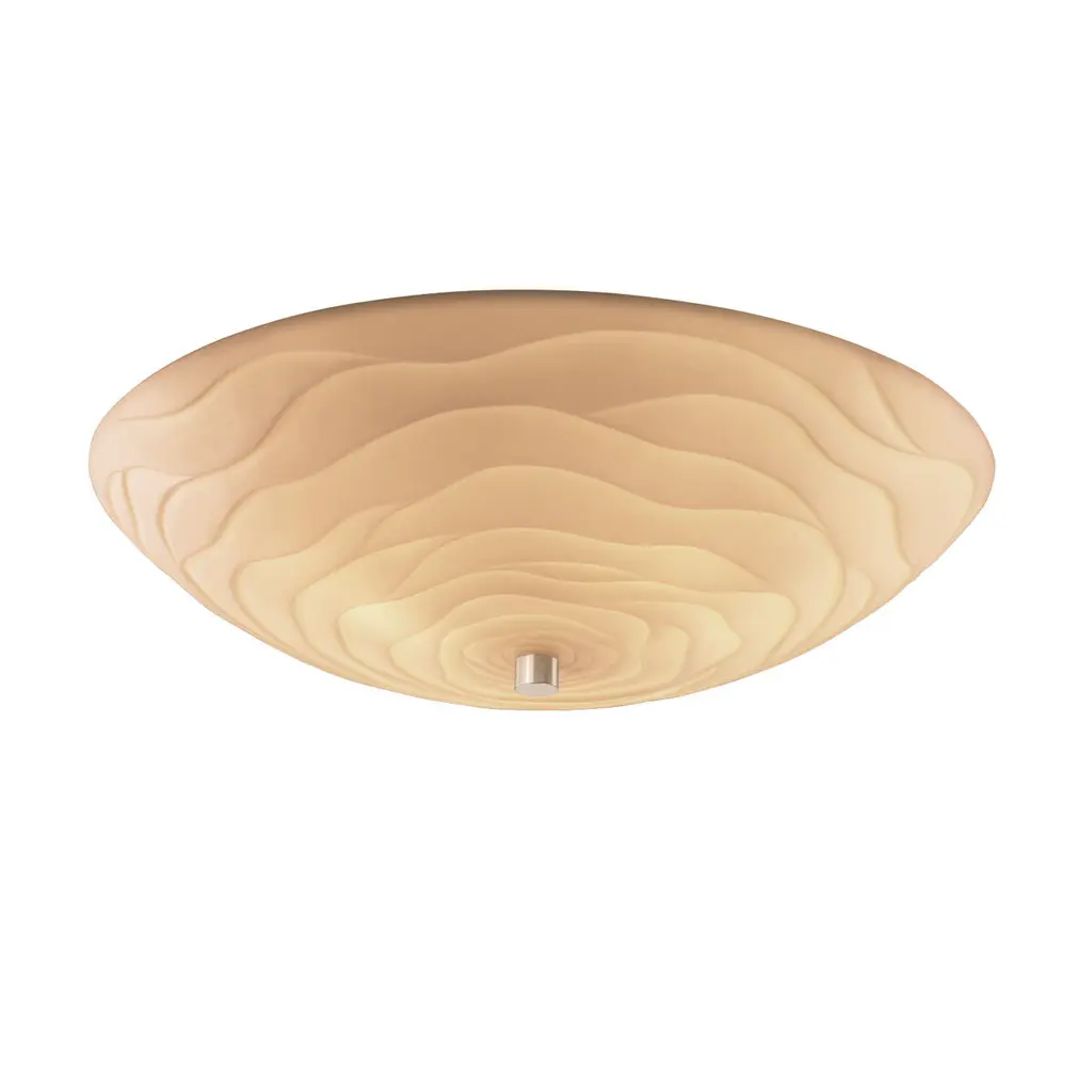 Porcelina 6 Light 24 Inch Matte Black Semi Flush Ceiling Light In Waves, Round Bowl, Incandescent
