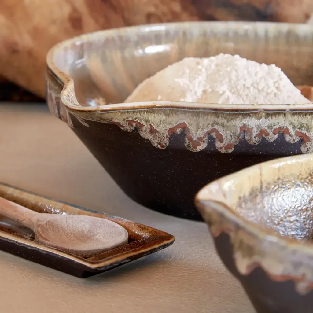 Casafina takes a modern approach to vintage culinary French pottery with its collection Poterie. Inspired by the timeless gems of “Poterie en Grès”, the collection pairs unique kitchenware and dinnerware pieces with different shapes, textures, and dramatic finishes, welcoming a casual look to any home. A 4-piece dinnerware set is available in two colorways. Each plate and mug features a hand-brushed rim that adds a rustic touch to the table. Simple, yet robust, these pieces will become a favorite. Vintage mixing bowls come in 3 sizes and showcase a spectacular reactive glaze on the interior, contrasting with a darker, matte glaze on the exterior. The collection also includes a generous oval platter, pitcher, cruet, a spoon rest, a charming array of bakeware items, a selection of kitchen utensils, and baking pieces featuring a stunning reactive glaze that adds a casual and contemporary look to the kitchen.