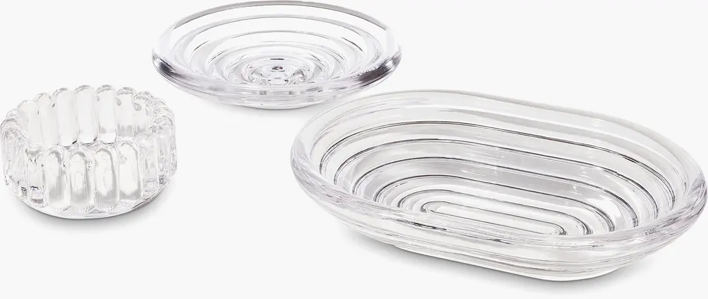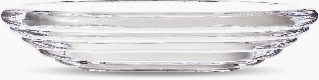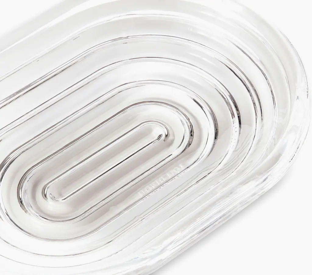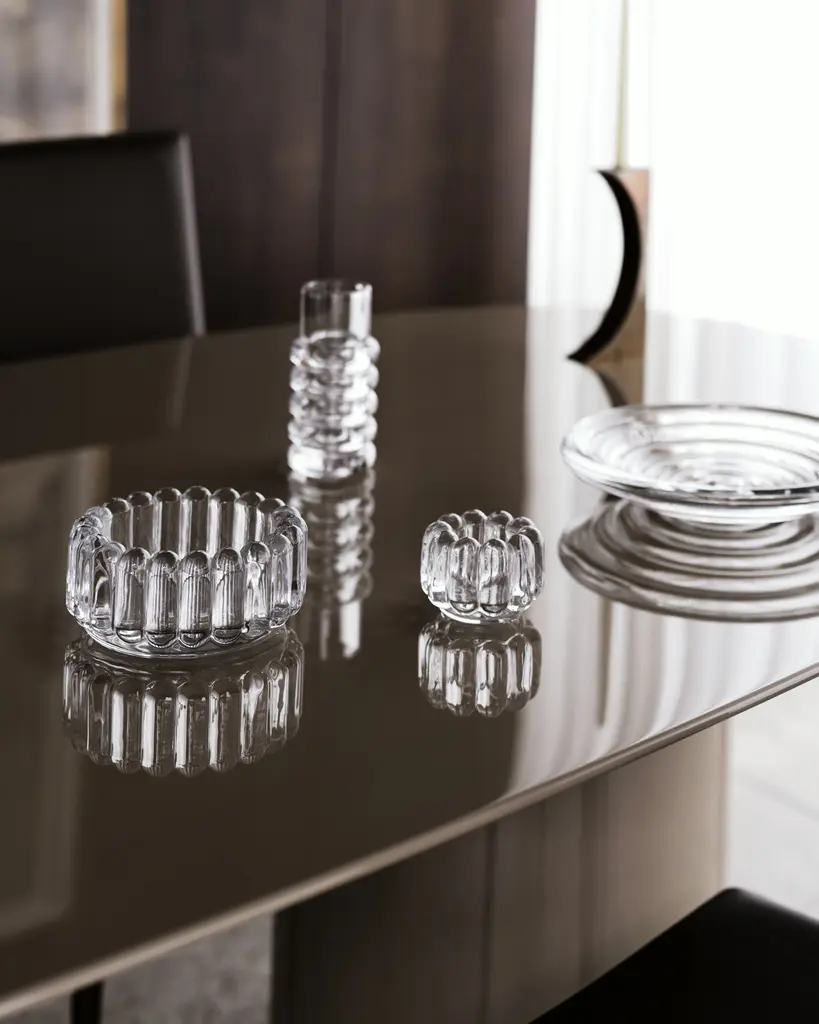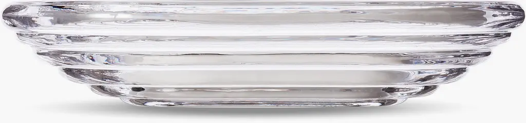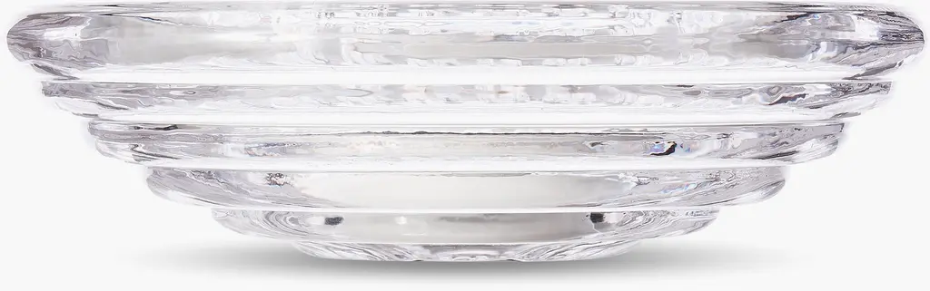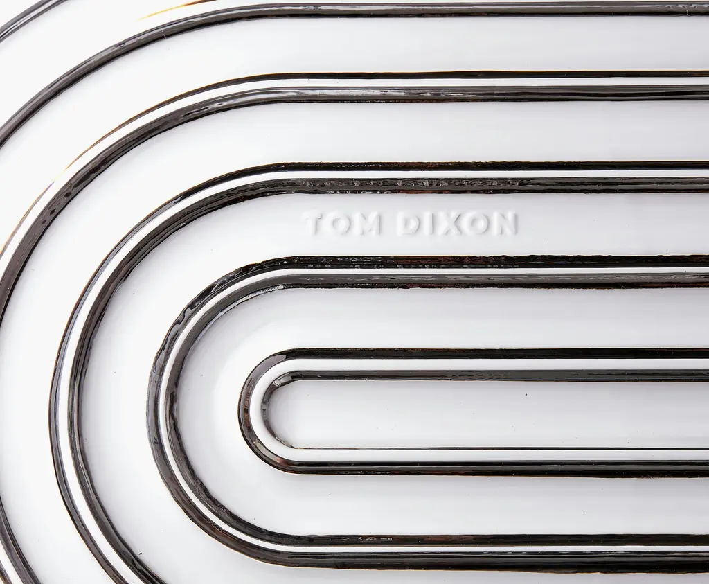 The Press Collection (2020) by British designer Tom Dixon reimagines the way light is captured and refracted. The Press Bowl offers a fresh way to display objects or serve a special dish. Its heavyweight grooves are made by pouring molten glass into iron molds. The resulting coils cleverly diffuse light and color to bring an atmospheric elegance to living spaces. Made in China.