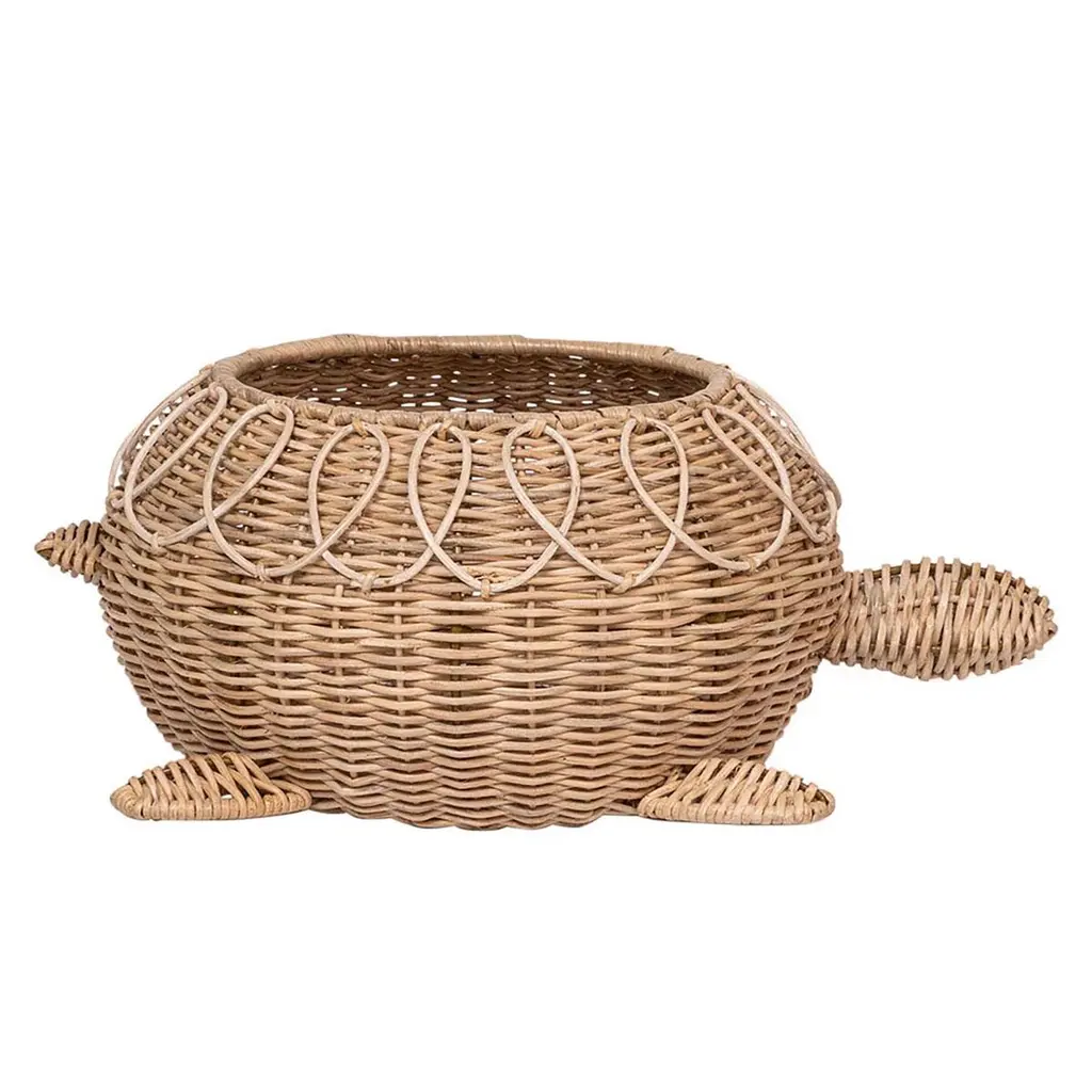 A symbol of wisdom and good luck, this hand-woven rattan turtle adds a splash of whimsy and natural texture to any space, designed for displaying houseplants, flowers or fruit.