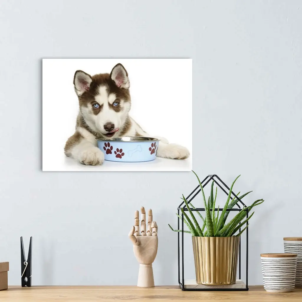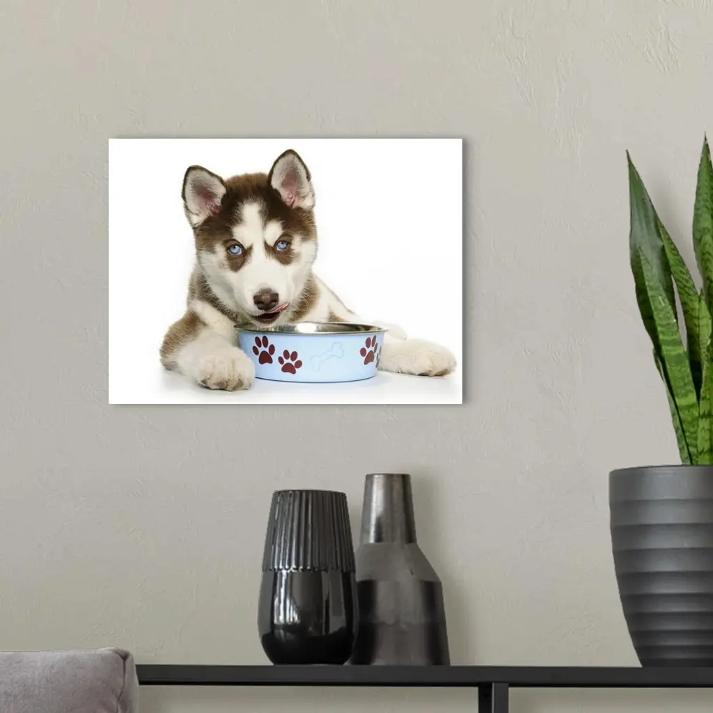 Puppy Husky Eating From The Bowl