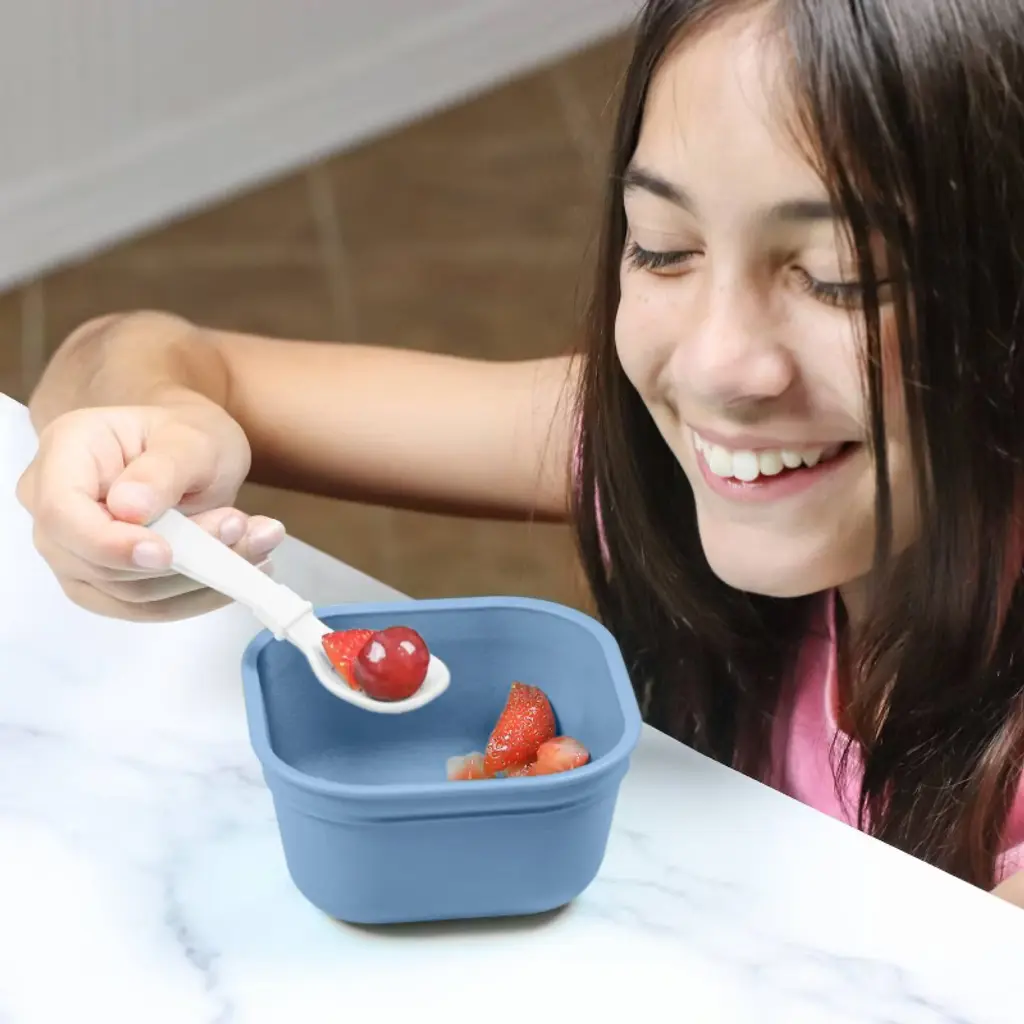 Re-Play’s 12 oz Square Bowls are designed with deep walls to make scooping easy and mess-free—perfect for portion control and kid-friendly meals. Crafted from sturdy, recycled plastic, these bowls are built to handle everyday use, from family dinners to backyard picnics and birthday parties.Available in a rainbow of vibrant colors, they mix and match effortlessly with Re-Play’s full line of plates, utensils, and cups for a fun and coordinated tableware set.Safe & Convenient:Microwave-safe for short 20-second warm-ups (not for cooking)Dishwasher-safe for quick and easy cleanupFor best results with red sauces, rinse promptly with grease-cutting soap before washingMade in the USA from recycled HDPE. BPA-, Phthalate-, PVC-, and Melamine-free.