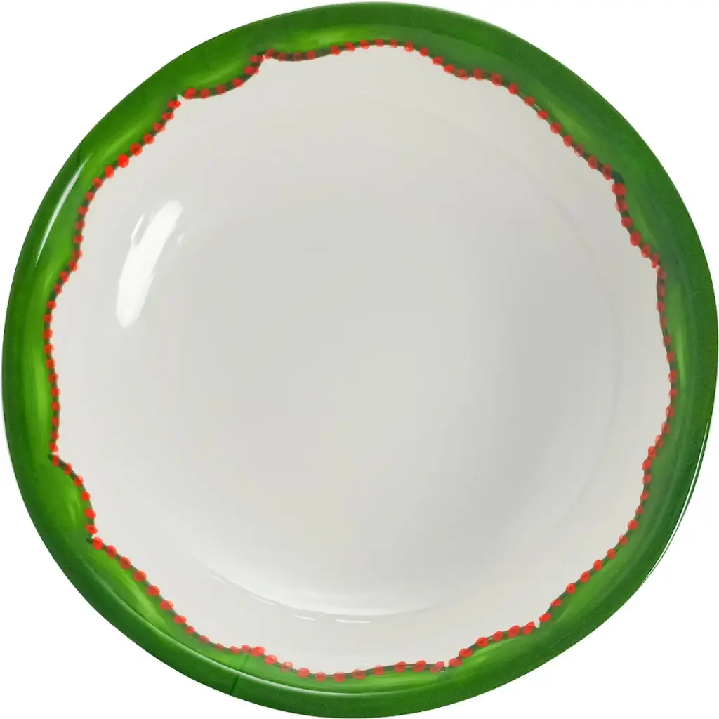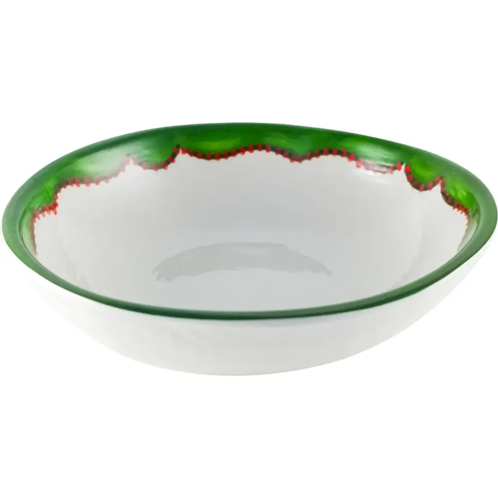 This adorable bowl brings festive cheer to any holiday table. Featuring a bright red + green berry trim about the rim. Perfect for holiday get togethers. Made of melamine, making it durable but easy to clean!