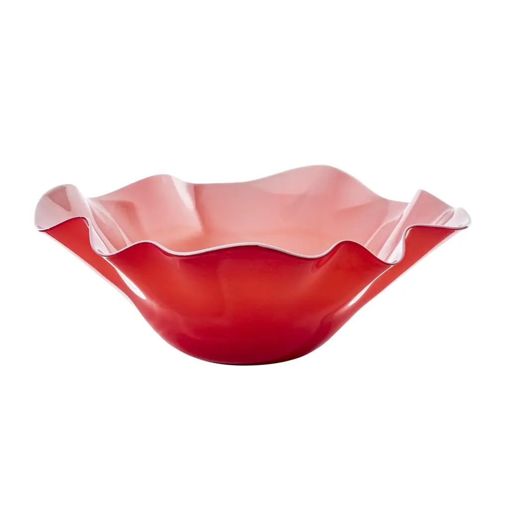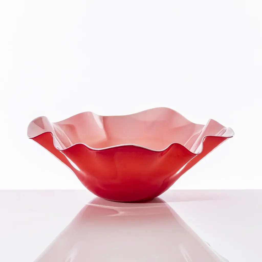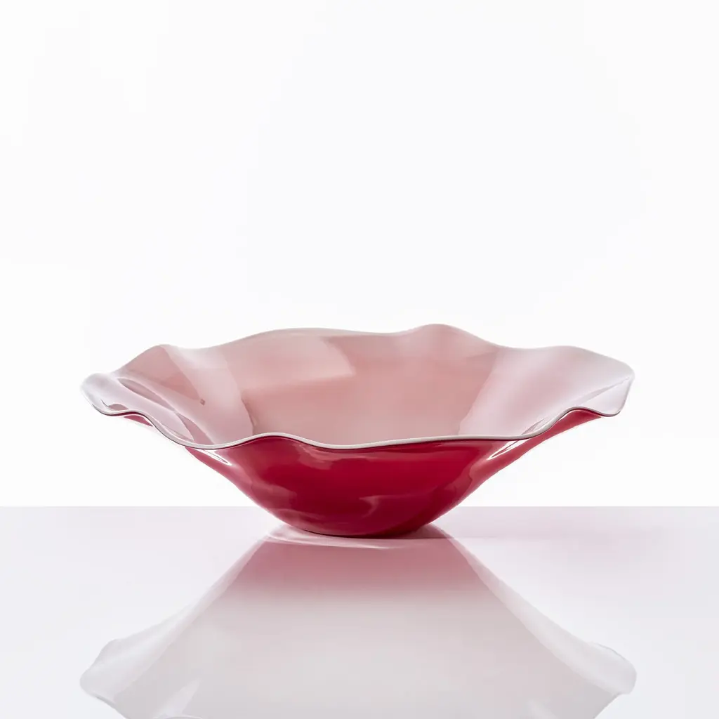 Indulge in true luxury with the Red Glass Bowl. Expertly handcrafted by the Master Glassmaker, this beautiful and gigantic floral masterpiece is a true work of art. Its soft and sweet shape, born from the manipulation of glass, will add a touch of elegance and sophistication to any space. Elevate your home decor with this exclusive piece.