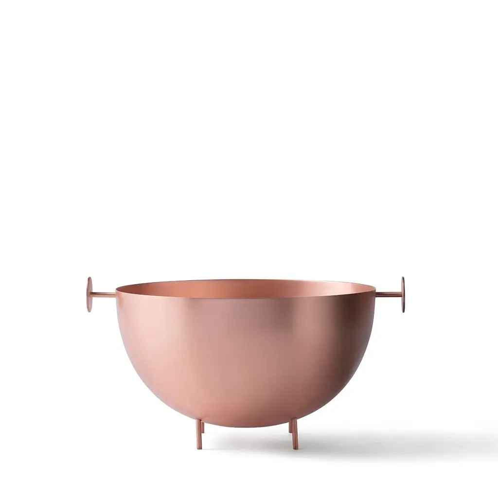 Red Moon, a large copper bowl with handles, is part of Lunar Landscape designed by Elisa Ossino for Paola C. The designer created a tableware collection, revisiting the classic themes of mise en place and the figurative influences inspired by still life in a modernist and Bauhaus tone. The slight mark of the lines that characterize every piece creates the effect of the dematerialization of weight, giving this collection the lunar lightness of a dance move.