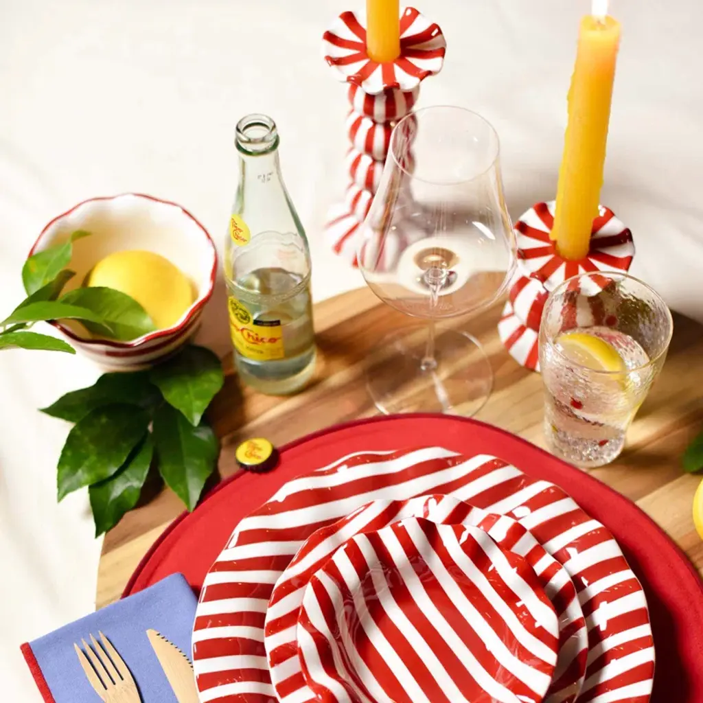 Red Stripe Ruffle Small Bowl
