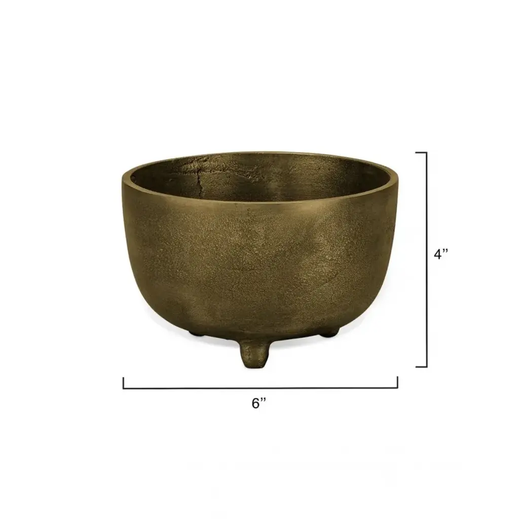 With the stark simplicity of artifacts from a distant age, this bowl reminds us of the beauty that can be found in everyday objects. Handcrafted of metal, each three-legged bowl is unique and looks especially lovely presented with your choice of decorative filler.