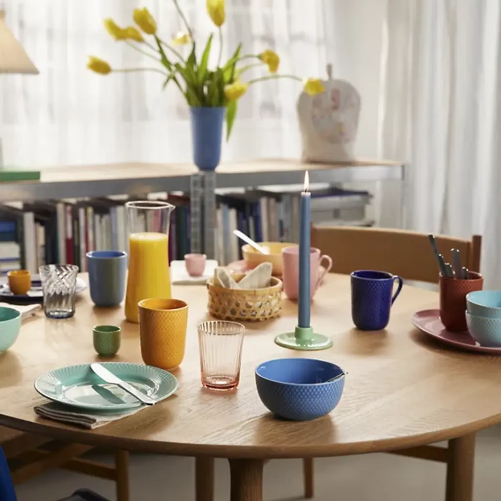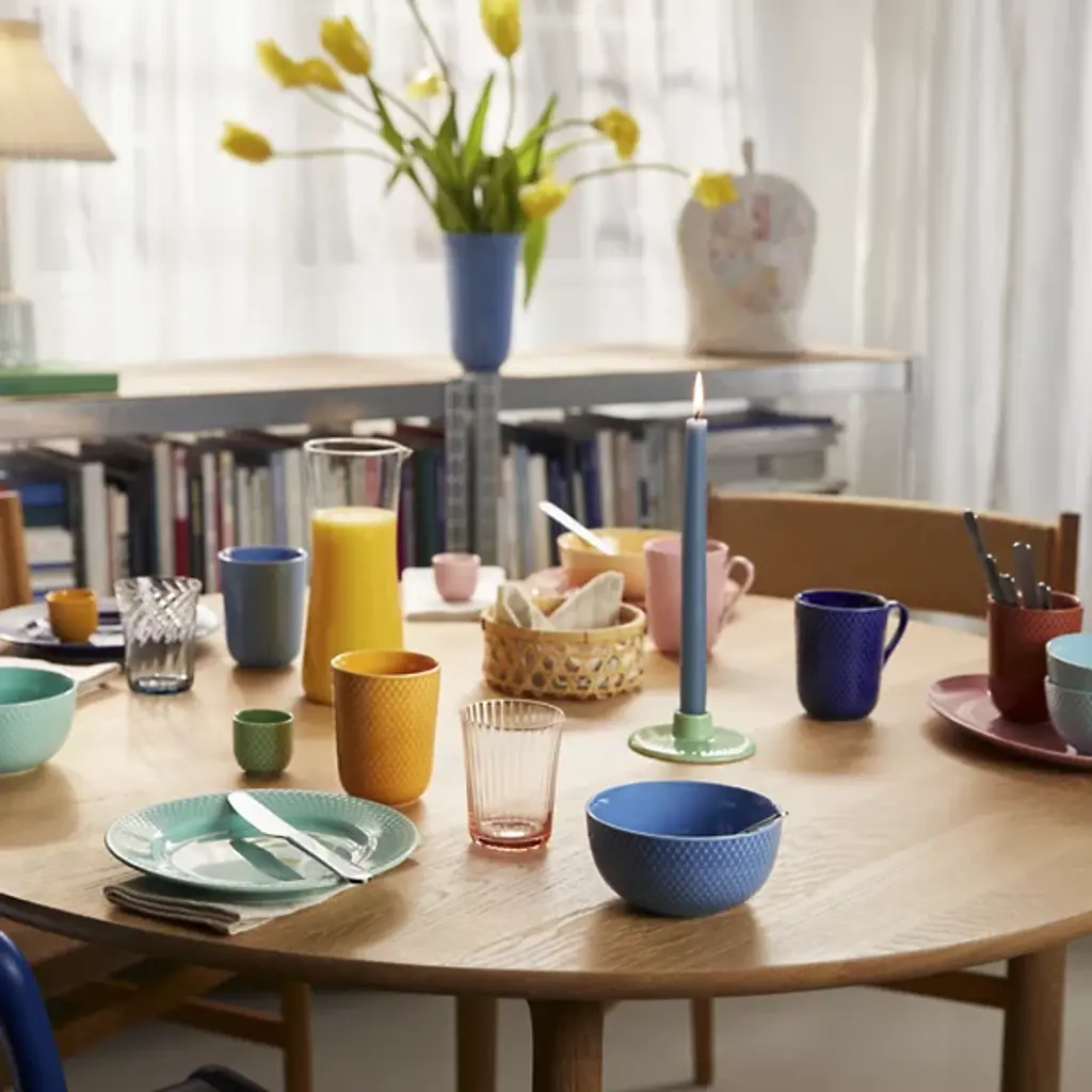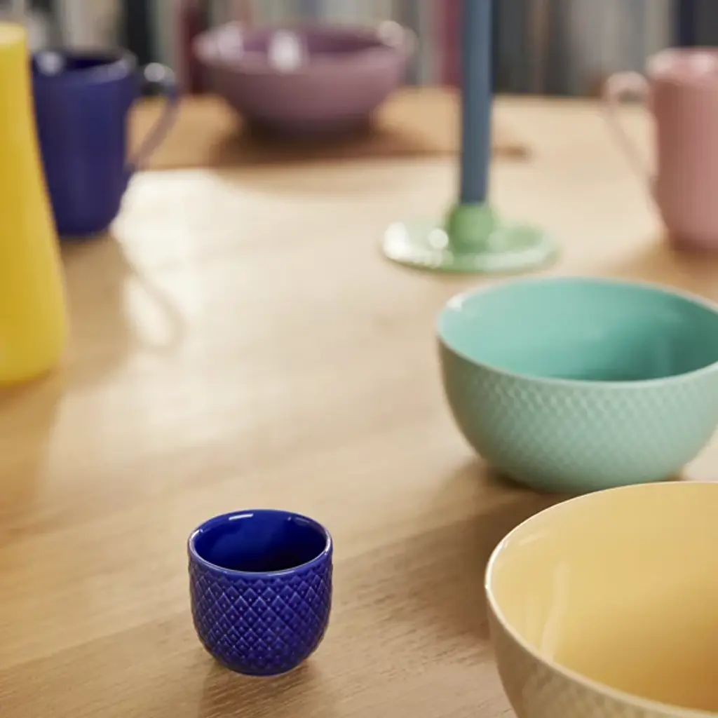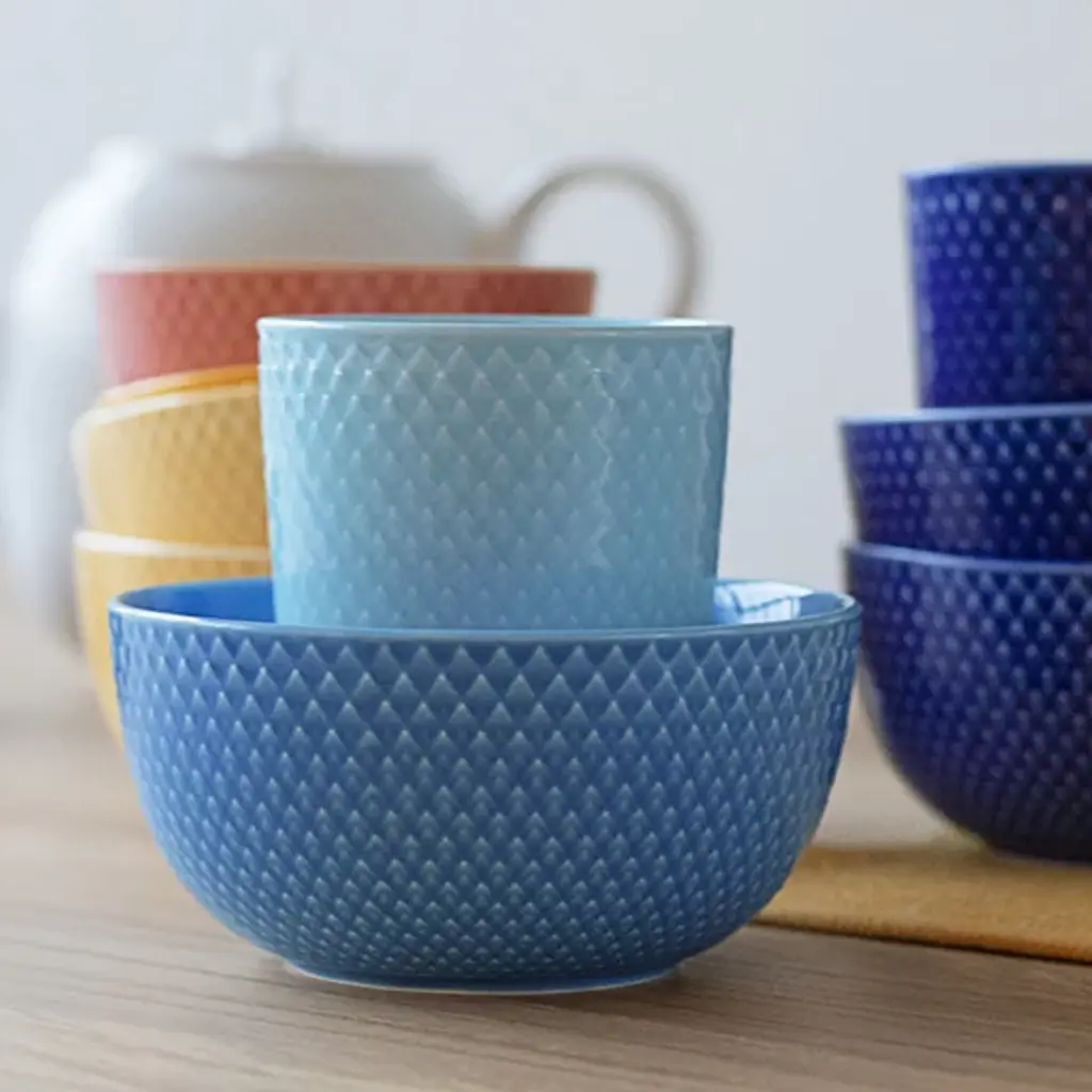 The Rhombe Color Regular Bowl, Set of 4 from Lyngby Porcelaen brings together refined porcelain design with a spectrum of expressive hues chosen by Stilleben designers Ditte Reckweg and Jelena Schou Nordentoft. Each bowl features a textured exterior that contrasts with a smooth, deep interior, offering both visual detail and functional form. Designed to complement the classic white Rhombe collection or stand on their own, the bowls are dishwasher- and microwave-safe, making them a practical and artistic addition to everyday dining.