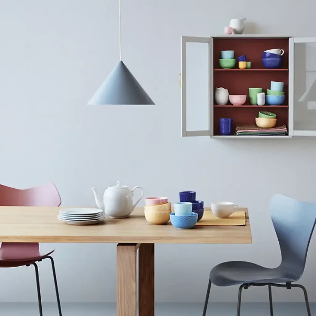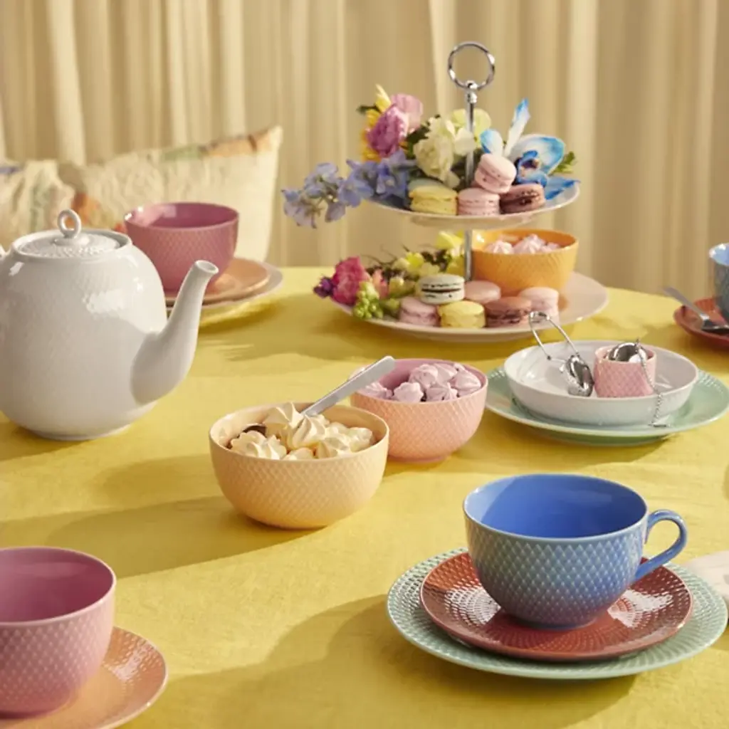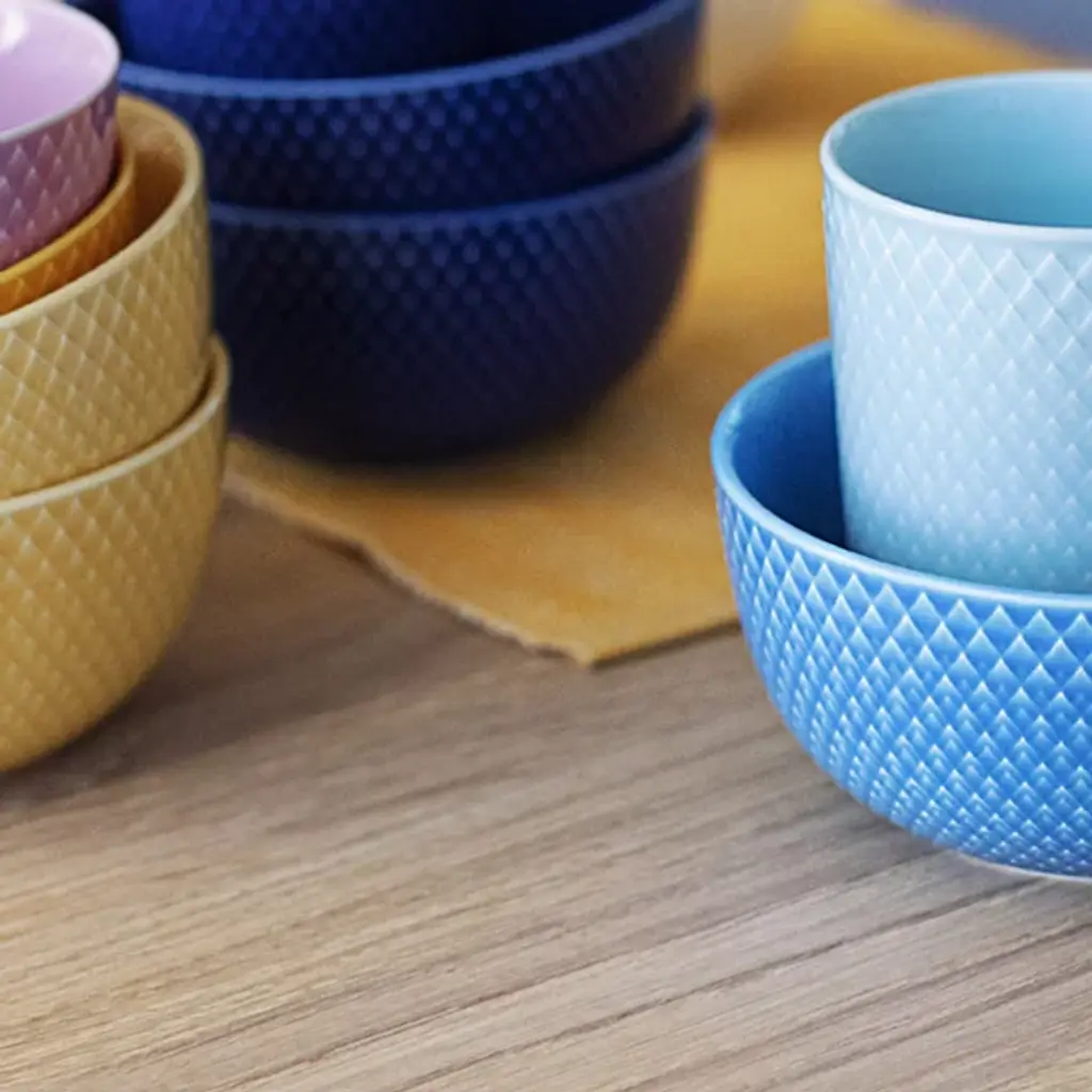 The Rhombe Color Regular Bowl, Set of 4 from Lyngby Porcelaen brings together refined porcelain design with a spectrum of expressive hues chosen by Stilleben designers Ditte Reckweg and Jelena Schou Nordentoft. Each bowl features a textured exterior that contrasts with a smooth, deep interior, offering both visual detail and functional form. Designed to complement the classic white Rhombe collection or stand on their own, the bowls are dishwasher- and microwave-safe, making them a practical and artistic addition to everyday dining.