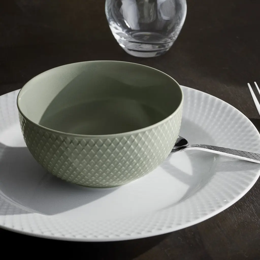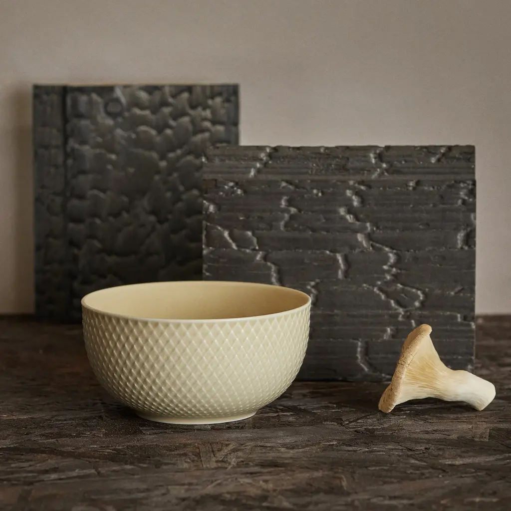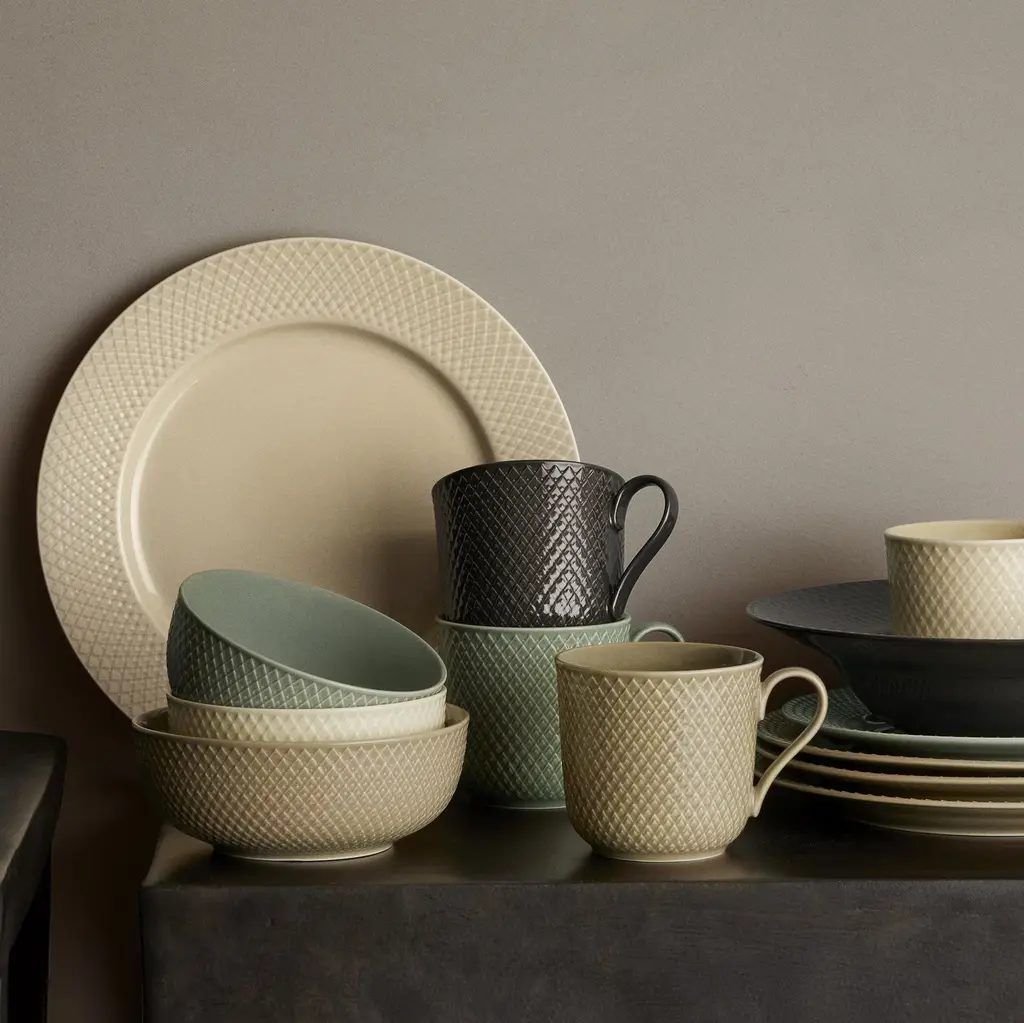 With a sophisticated, earthy color palette, the Rhombe Earth Bowl from Lyngby Porcelaen brings mindful elegance to the table. This porcelain bowl features the collection's signature Rhombe pattern, a subtle geometric relief pulled from the brand's archives. The warm, natural colors were carefully curated by the design duo Stilleben to create an inviting atmosphere. This set of four is perfect for serving soups or cereal, designed to be mixed and matched for a modern, relaxed aesthetic. Highlights: