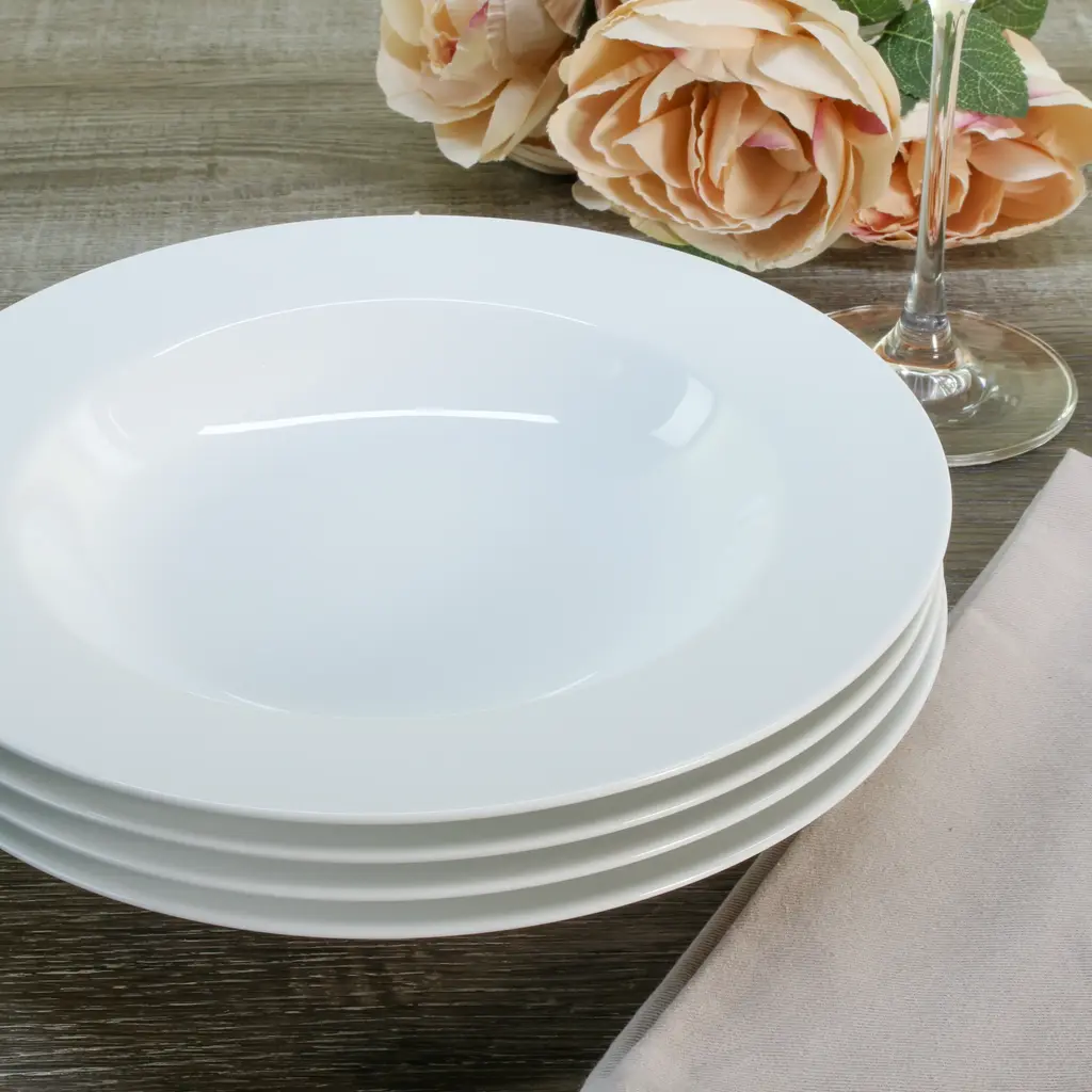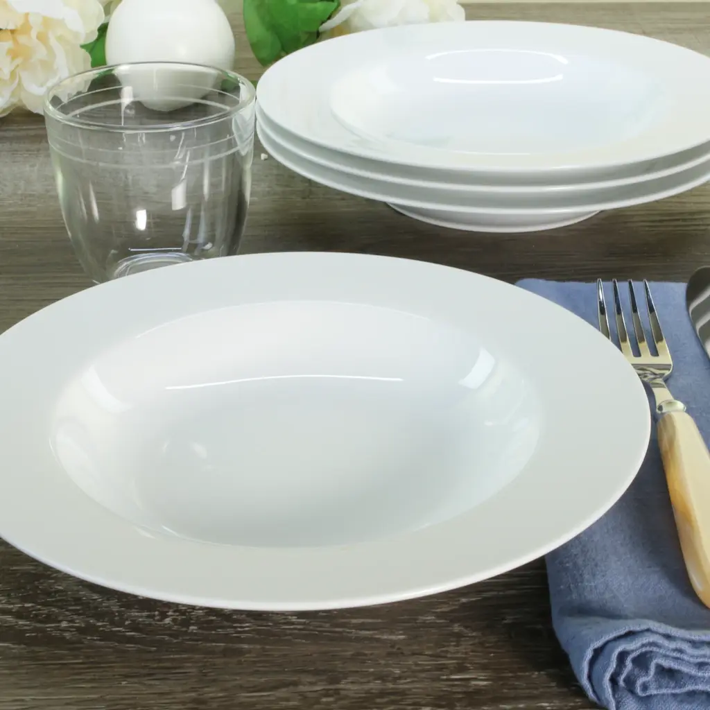 Crafted from durable porcelain, this set of 4 BIA Cordon Bleu Rim Soup Bowls in classic white adds elegance to any table setting. With a 12 oz. capacity and measuring 9", these simple yet sophisticated bowls are perfect for everyday use or special occasions. Their versatile design allows them to effortlessly transition from casual to fine dining, evoking a cafe like ambiance or restaurant quality presentation. Dishwasher and microwave safe, these bowls are practical and easy to maintain, ideal for entertaining guests or enjoying a cozy meal at home. Elevate your dining experience with these timeless pieces that seamlessly blend with different table settings and decor styles. BIA Cordon Bleu: Designed With Modern Sensibility For Wherever You Live, However You Cook, And Whenever You Entertain.