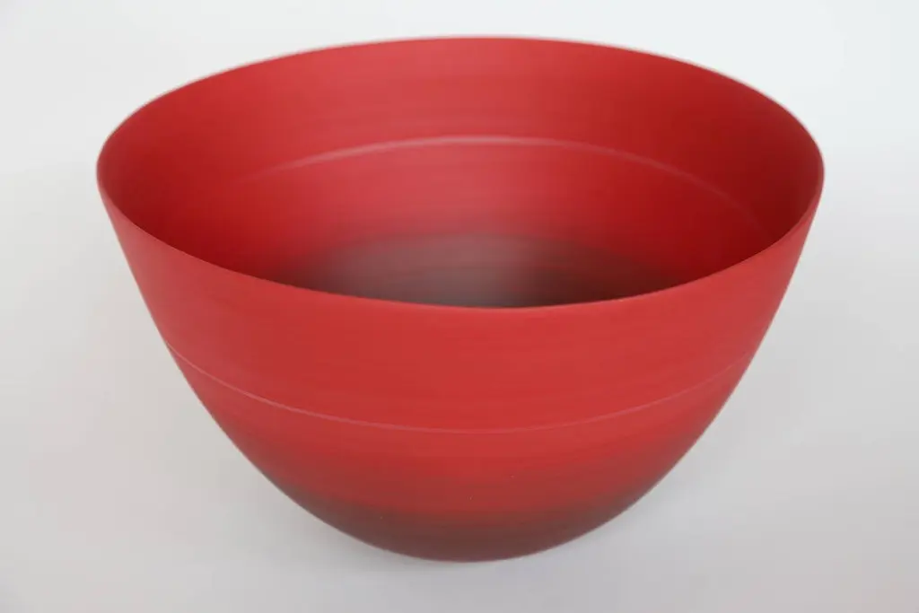 Italian handmade ceramic bowls in poppy, green bamboo and teal by Rina Menardi. Priced individually. Available in other colors. Made to order. Shipping from Europe not included.Medium poppy red $825 (Diameter 13.75", height 8.25").Medium green bamboo $745 (Diameter 13.75", height 8.25").Low teal $485 (Diameter 10.25", height 7").