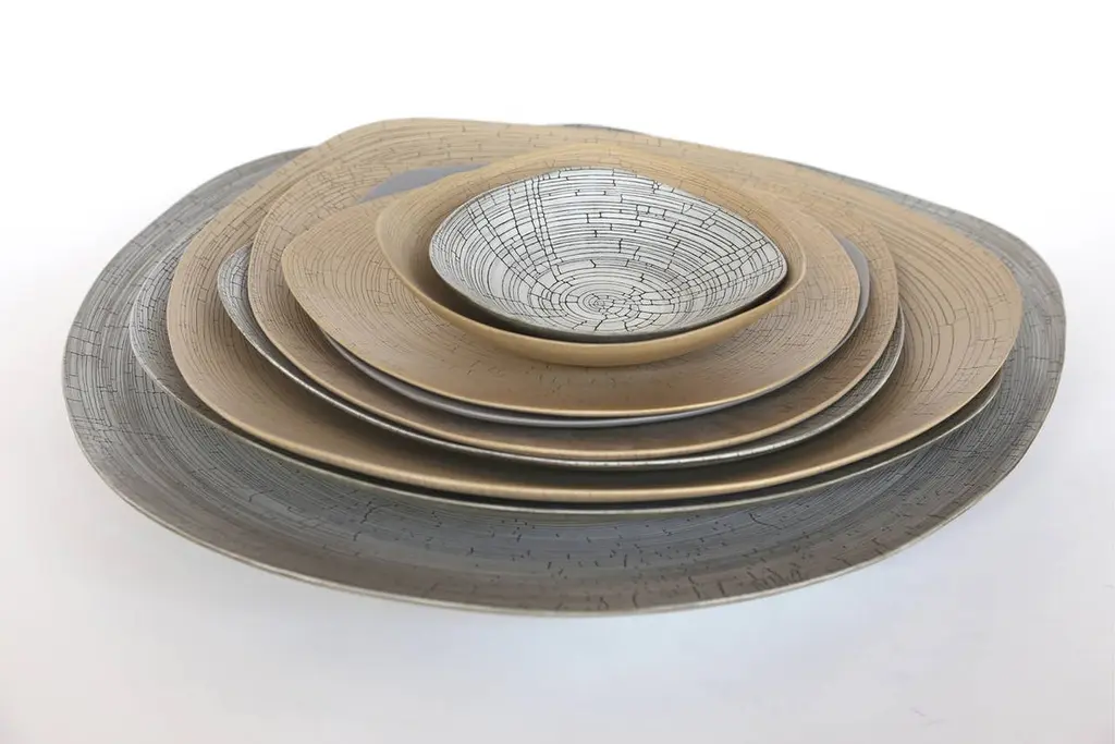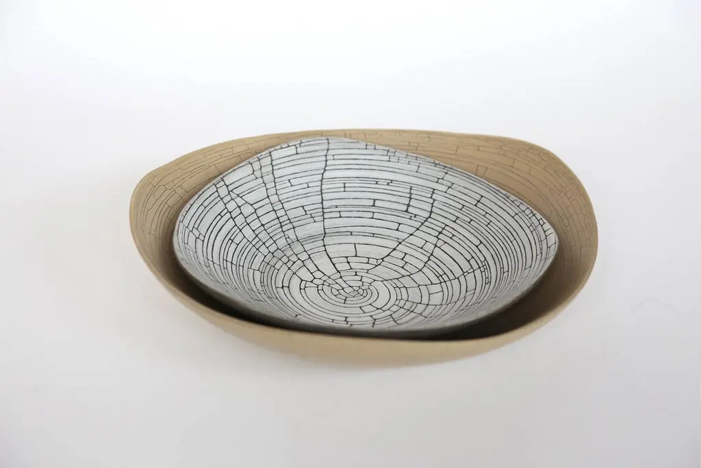 Rina Menardi Handmade Ceramic Triangular Crackled Bowls