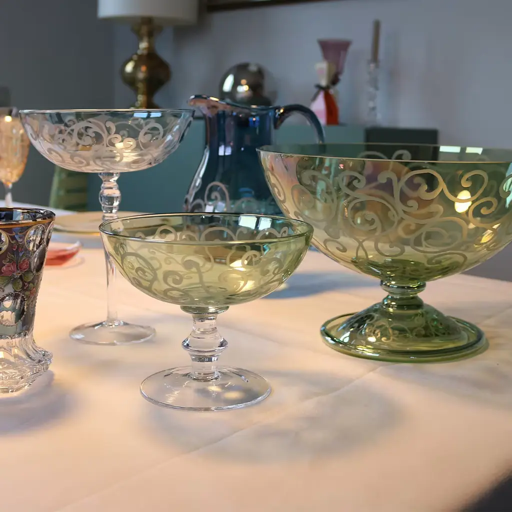 Designed with femininity and grace in mind, this precious stemmed bowl makes for a sublime solution for gathering bon bons or candies. Subtle curves trace the stemmed base's perfect transparency, while the pink-toned bowl flaunts a motif of curls reminiscent of the spectacular darting movements of ribbons during rhythmic gymnastics performances. Deftly mouth-blown, each piece is unique.