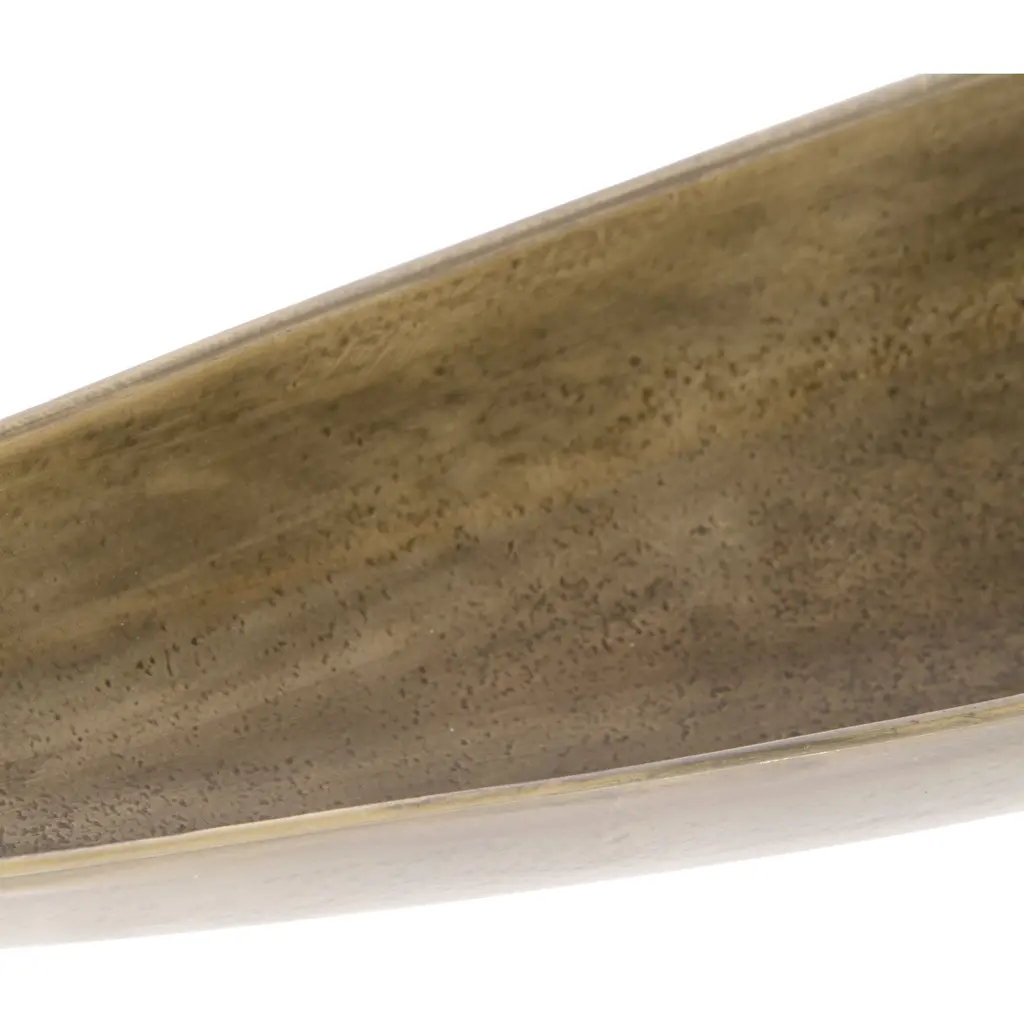 The Antique Brass Finished Cast Aluminum Bowls Feature A Sleek, Elongated Design, Perfect As Decorative Centerpieces Or Functional Accents For Any Room. Their Minimalist Yet Striking Appearance Adds A Touch Of Vintage Elegance To Modern And Classic Spaces Alike. May Also Be Hung On The Wall And Used Outdoors. Sizes: S-25x3x4, L-31x4x6