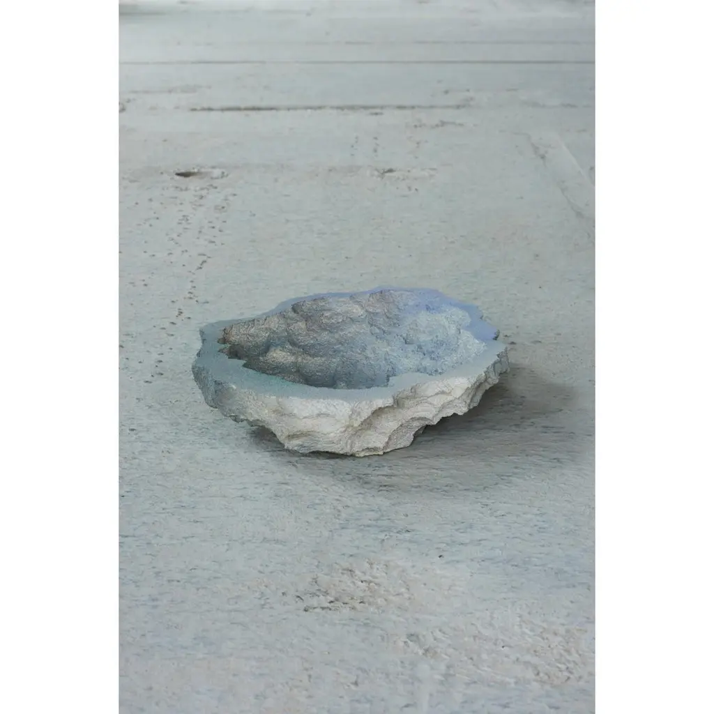 Rock Pond bowl by Andredottir & BobekDimensions: W 11 x H 35 cmMaterials: Reused Foam/mattress and Jesmontite Hardner in Color Gray Fade.Artificial Nature is a collaboration between the artist and design duo Josephine Andredottir and Emilie Bobek.Chrystal Bowls imitates landscape with artificial materials. We create an artificial scene of nature because art and design often find common ground here.The natural colours of rock, stone and moss are what first comes to the eye when looking at the scene from far away, but when moving in between the shapes you slowly feel the transformation from natural to artificial within the objects. Sculptural function as well as physical function is not an aim in itself but is instead replaced with a diverse landscape where the object floats together as a whole.Here you are allowed to explore the materials and explore moss and stone in a new way. The many handcrafted shapes give a natural rough looking surface that allows the eyes to wander and find new places to investigate.Our work aims to encourage art and design as symbiotic disciplines, giving us as performers free rein to go beyond our professional backgroundand develop a new and experimental art and design language together. We are curious about the borderland between art and design and are focused on the definition and use of the objects we surround ourselves with daily.Our artworks focus on material study, design language, object, and function. We believe that our work can contribute to society and raise socialawareness of material research in design, art, and architecture. We believe that our work can contribute to engaging artworks that createless waste and focus on high quality and sustainability in objects. We believe that our works can push ourselves and others to question the definition of objects by using modern material research in hand-built shapes and structures.We see ourselves as an art and design generation of material researchers. Our works aim to explore how objects and materials are used today inproducts and how we can cross the borders and use materials to their full potential.