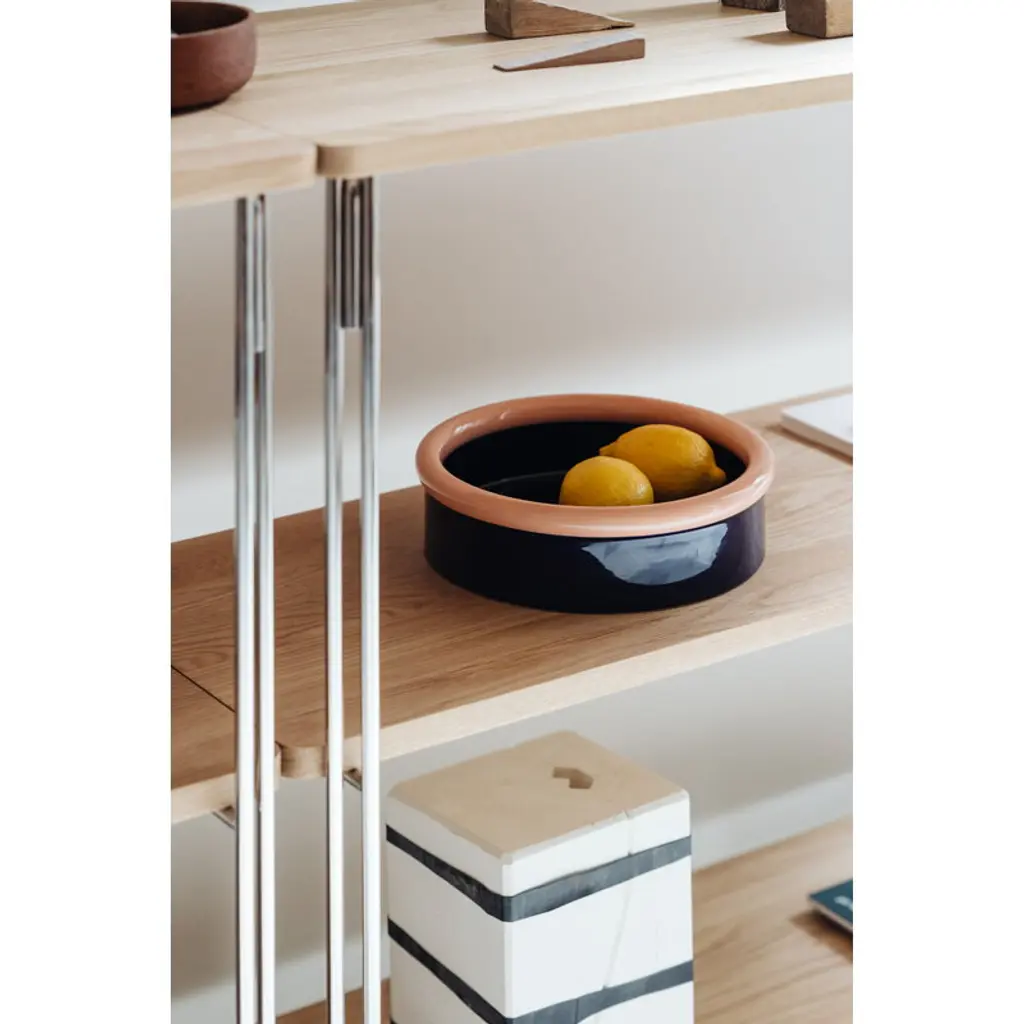 Nine's Rod bowl pays homage to traditional pottery and ceramic techniques. Designed by Julien Renault, the bowl gets its unique character from the combination of two harmonious tones, offering a simple yet striking vessel for storing fruits or tiny treasures at home. The hand-crafted and glazed pots, vases, and bowls of the Rod collection stand out as individual decorative pieces but also blend beautifully when paired together.
