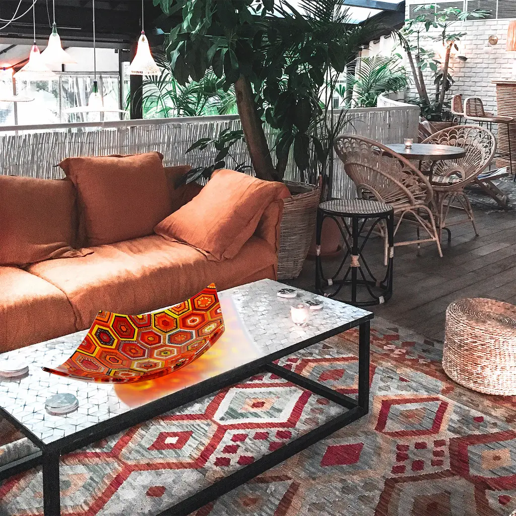 Rombo Hexagon Polychrome Murano Glass Centerpiece Bowl