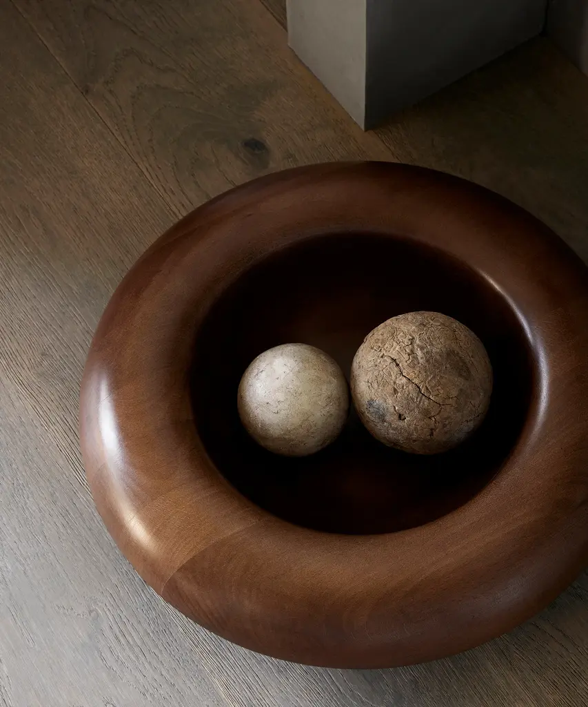 Dramatic in scale and expression, the Rond Bowl is an ideal centerpiece for a dining or a coffee table, anchoring a large surface space. Expertly cast in concrete, the versatile design has an intriguing surface that adds textural appeal to spaces and an exaggerated lip that lends dimension to the piece. Designed by Colin King Studio Llc for Audo Copenhagen North America.