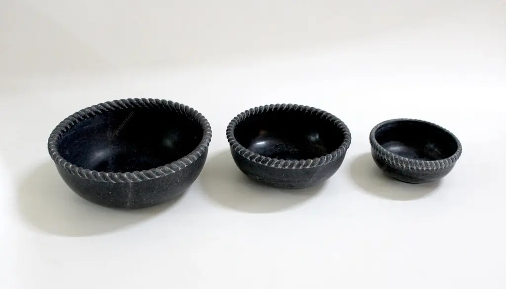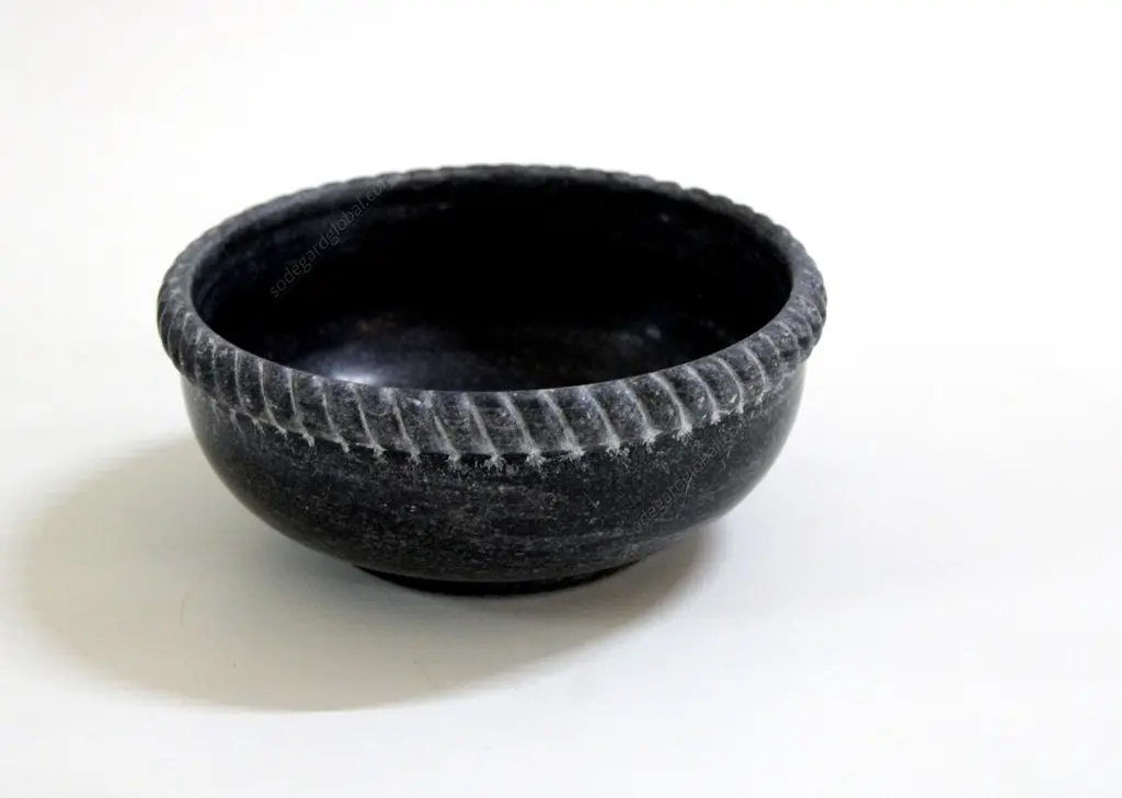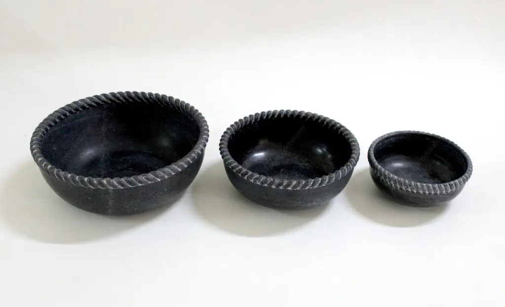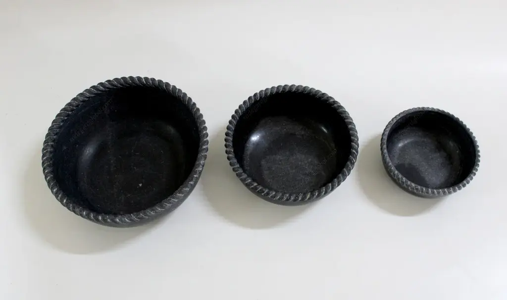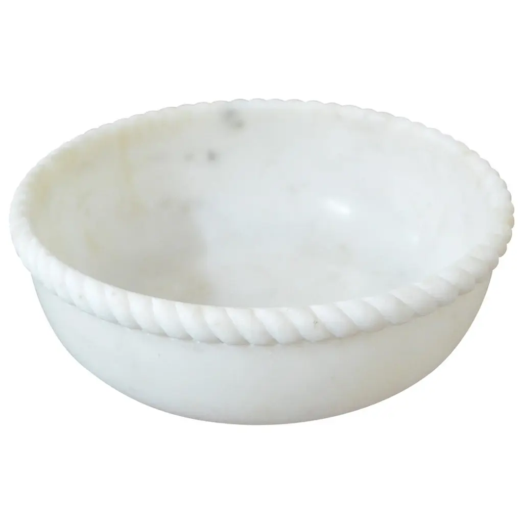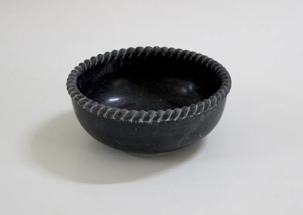 Sculpted out of a single block of marble with a delicately carved rope edge, perfect for a potpourri, a fruit bowl or just a key catch.Round Rope Bowl in Black MarbleSize- 8.5” x 8.5” x 3.5” H.Materials - Black Marble, Hand-CarvedBuyer Cancellation-The cancellation charge is 25% which increases to 50% if the production is started.Prices do not include shipping from India (for custom orders) or our MN warehouse (items from stock). That will be additional.