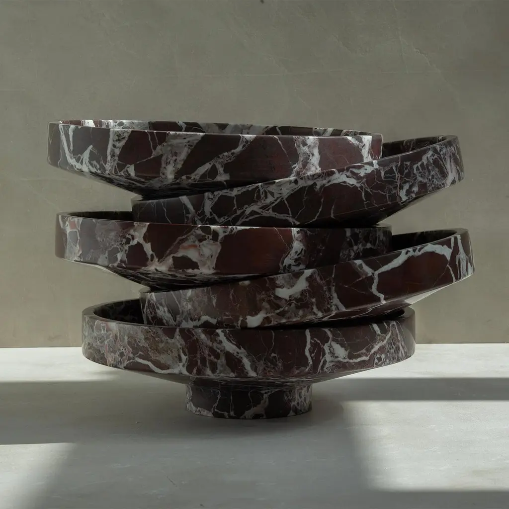 Introducing our exquisite Rosso Levanto Marble Bowl, a fusion of elegance and functionality. Crafted from luxurious Rosso Levanto marble, this stunning bowl is a testament to timeless beauty and sophistication. Whether displayed as a decorative accent on a coffee table or used as a chic fruit bowl in the kitchen, its rich hues and natural veining will effortlessly elevate your decor.Each bowl is meticulously handcrafted, ensuring that no two pieces are exactly alike, adding a unique charm to every setting.Care: do not use any acid, clean with a gentle cloth and soap