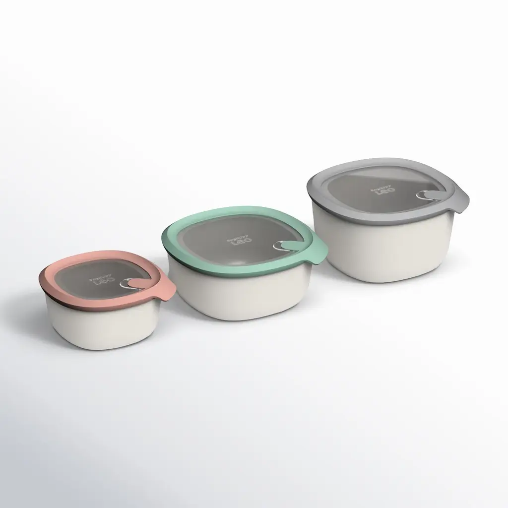 Created by Danish designers in 1954, the Margrethe bowl was produced and named after then Princess Margrethe, the current queen of Denmark. A modern classic the easy-care melamine mixing bowls have ergonomic handles, pouring spouts and a non-skid ring at the bottom. Complete with lids, this set of bowls includes 2-, 3- and 4-liter bowls.