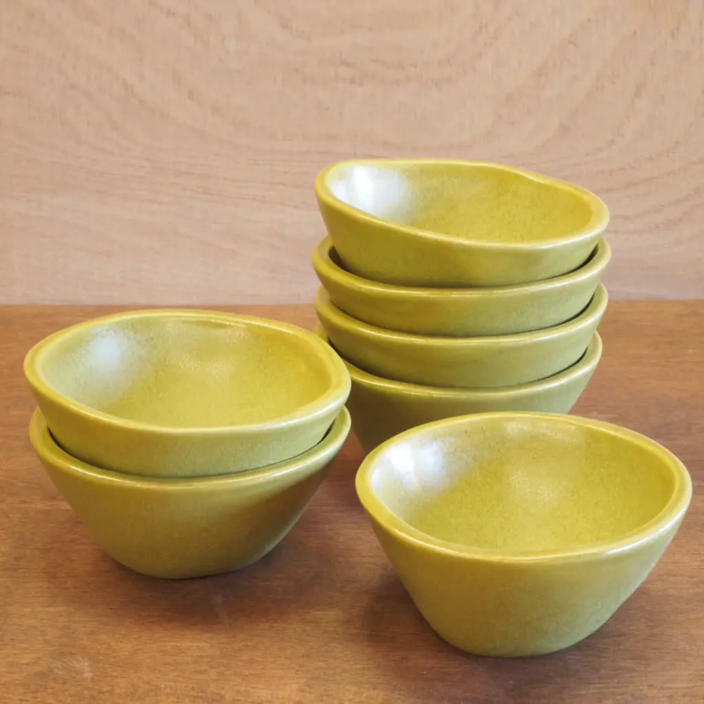 Extremely versatile bowl; great for small servings of ice cream, fruit, soup. Hand crafted in a studio on their olive orchard in northern California from a high-fire stoneware clay. Microwave and dishwasher safe, lead and cadmium free. Features