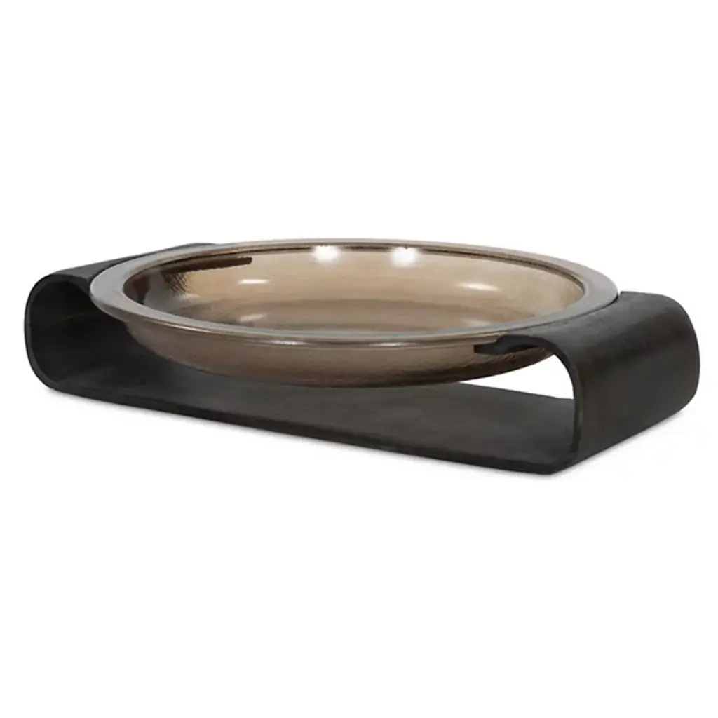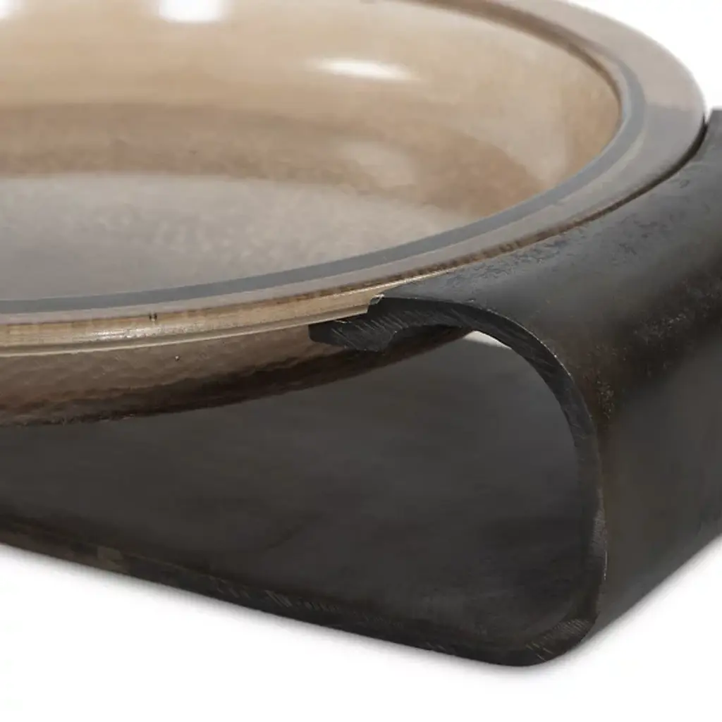 The Runa Bowl from Four Hands defies expectations by suspending cast glass within a curved aluminum frame. This innovative design creates the illusion of floating transparency, with the glass bowl nestled securely within its metal cradle. The rounded edges of both components establish a harmonious visual rhythm between materials. Light plays through the glass surface, creating subtle refractions that change throughout the day. Equally at home filled with decorative objects or left empty to appreciate its sculptural qualities, this bowl bridges the gap between practical container and artistic statement with its material juxtaposition and balanced proportions.