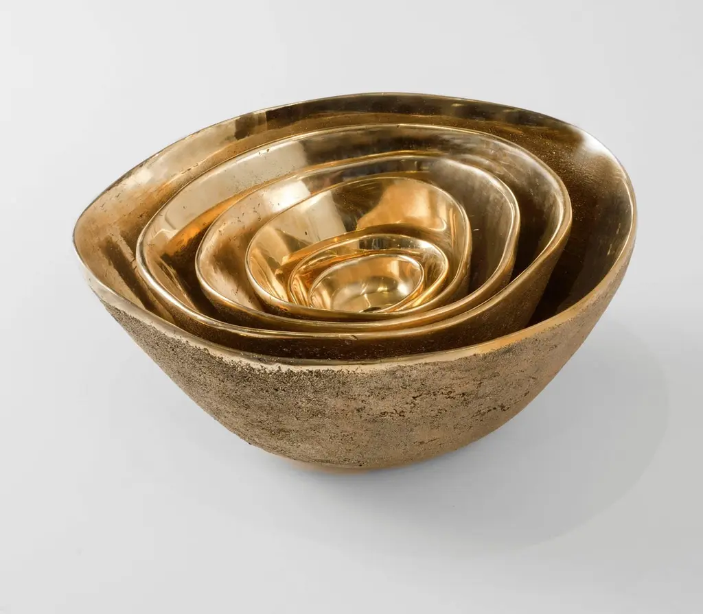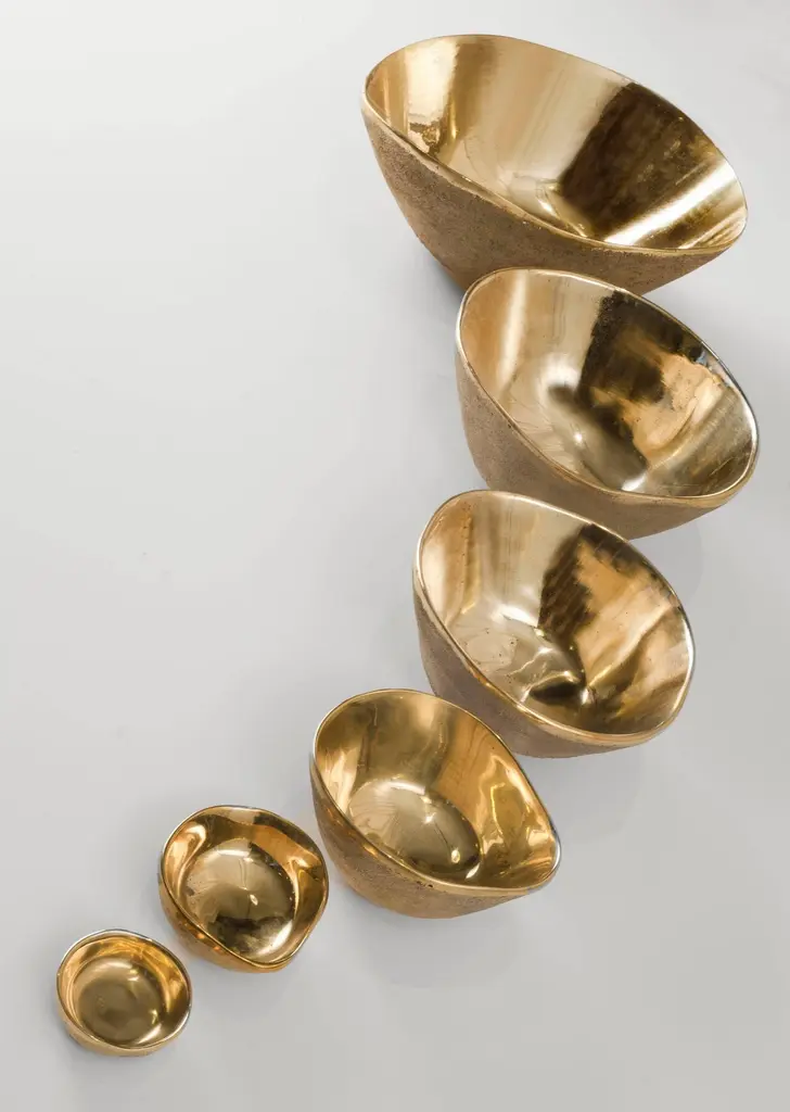 "Rupi"Bronze bowl by Jaimal Odedra. The "Rupi" bowls are made in five sizes, which may be used individually or as a set of nesting bowls. This is the third largest size out of five. Each piece is sand cast by artisans in Morocco. Stamped: Jaimal Odedra.