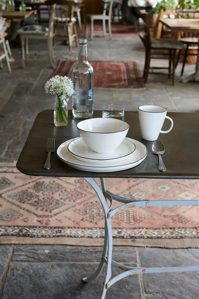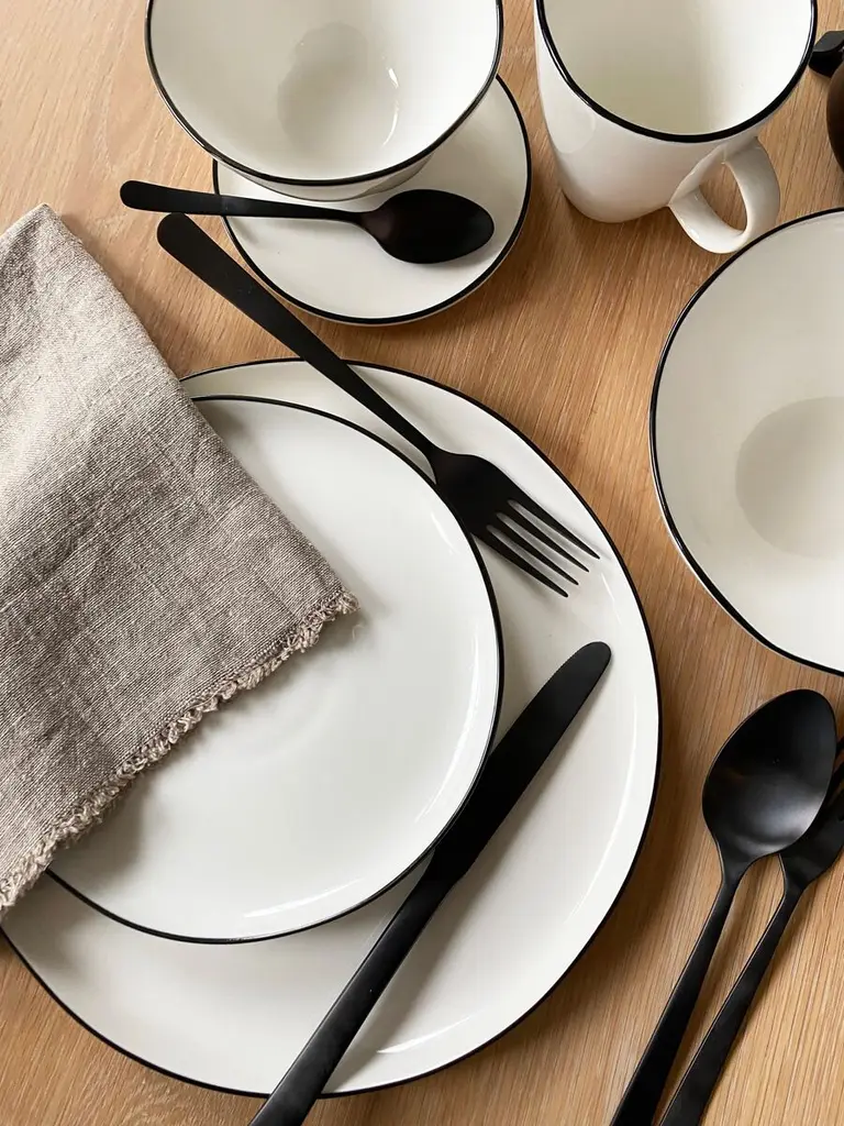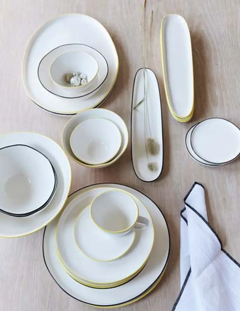 Named a design classic by Elle Décor, this best-selling porcelain dinnerware reflects its European heritage through its understated elegance. A single, hand-painted line outlines the simple, organic shapes. Available with various rim colors. Porcelain. Microwave and Dishwasher Safe (certain rims cannot be microwaved). Set of 2.