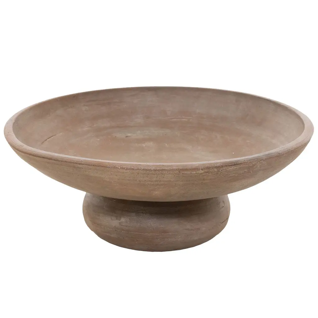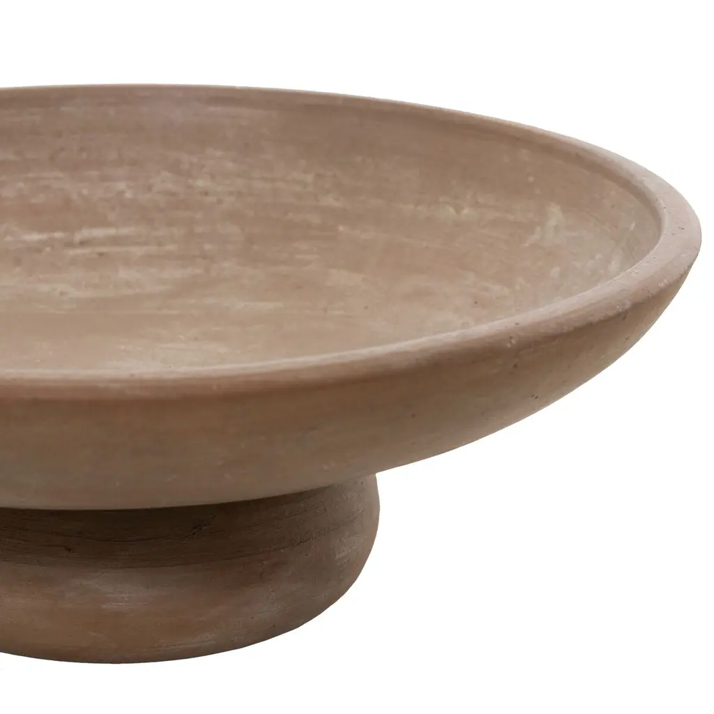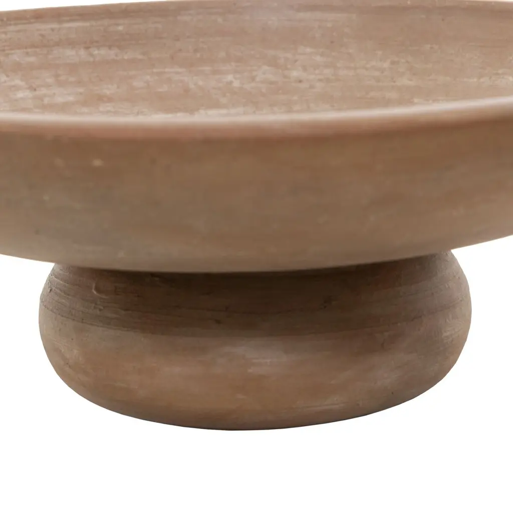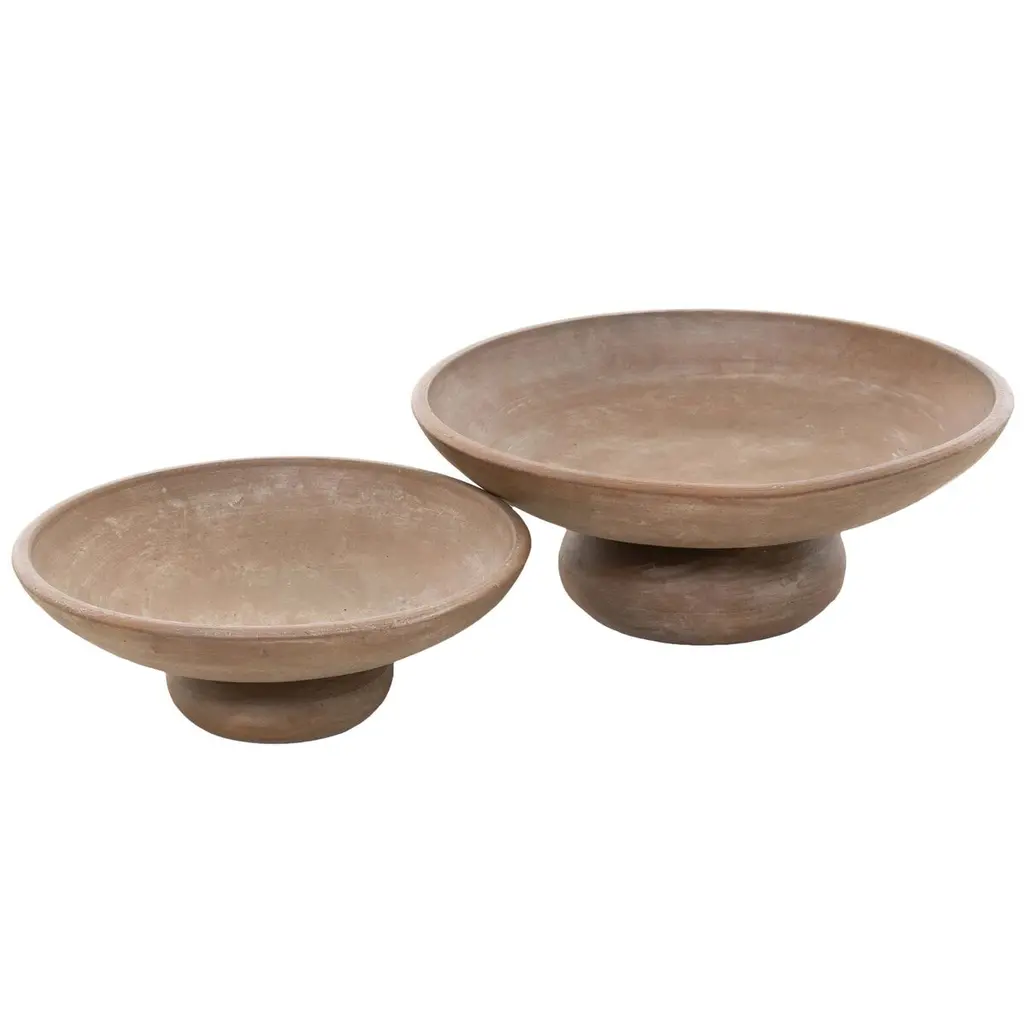 Hand-thrown clay ensures each piece in this pair of bowls has unique character, featuring a flattened pedestal base design. Not water-tight; for decorative use only.