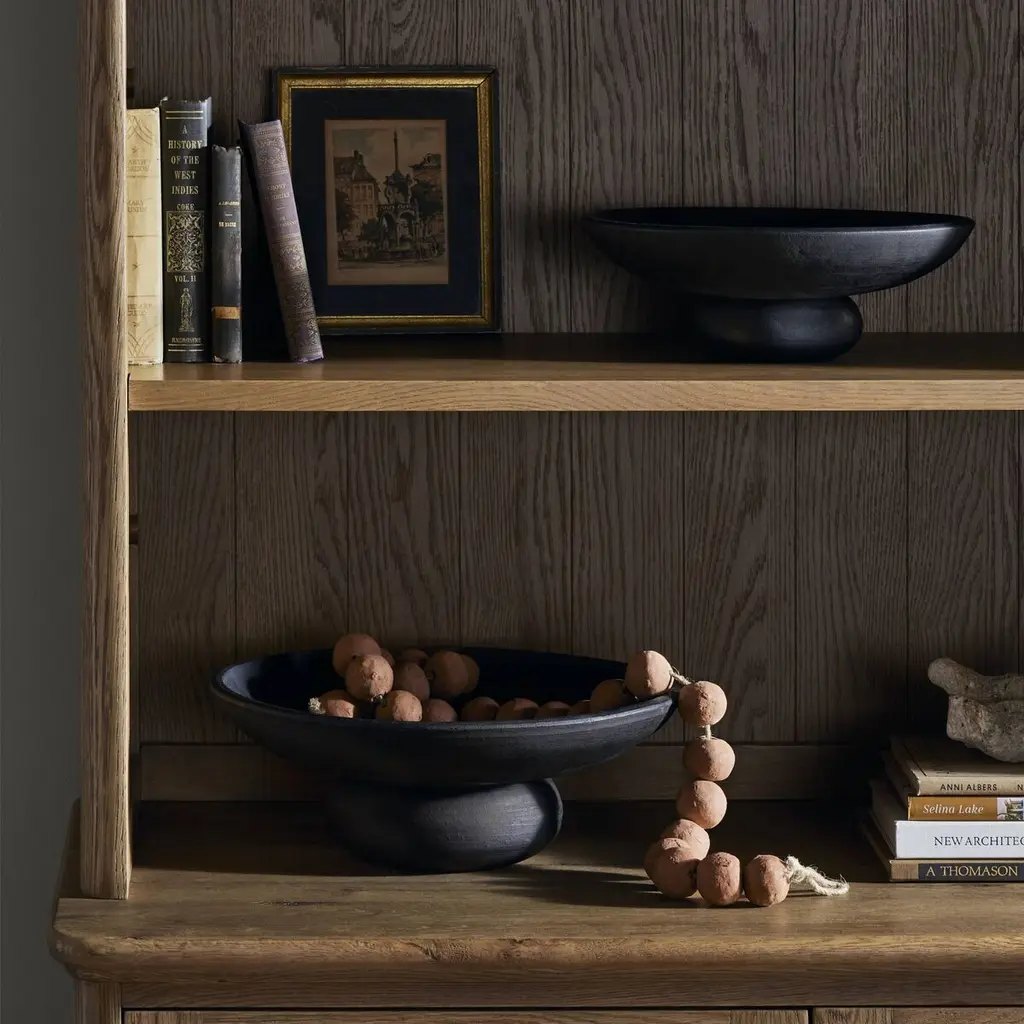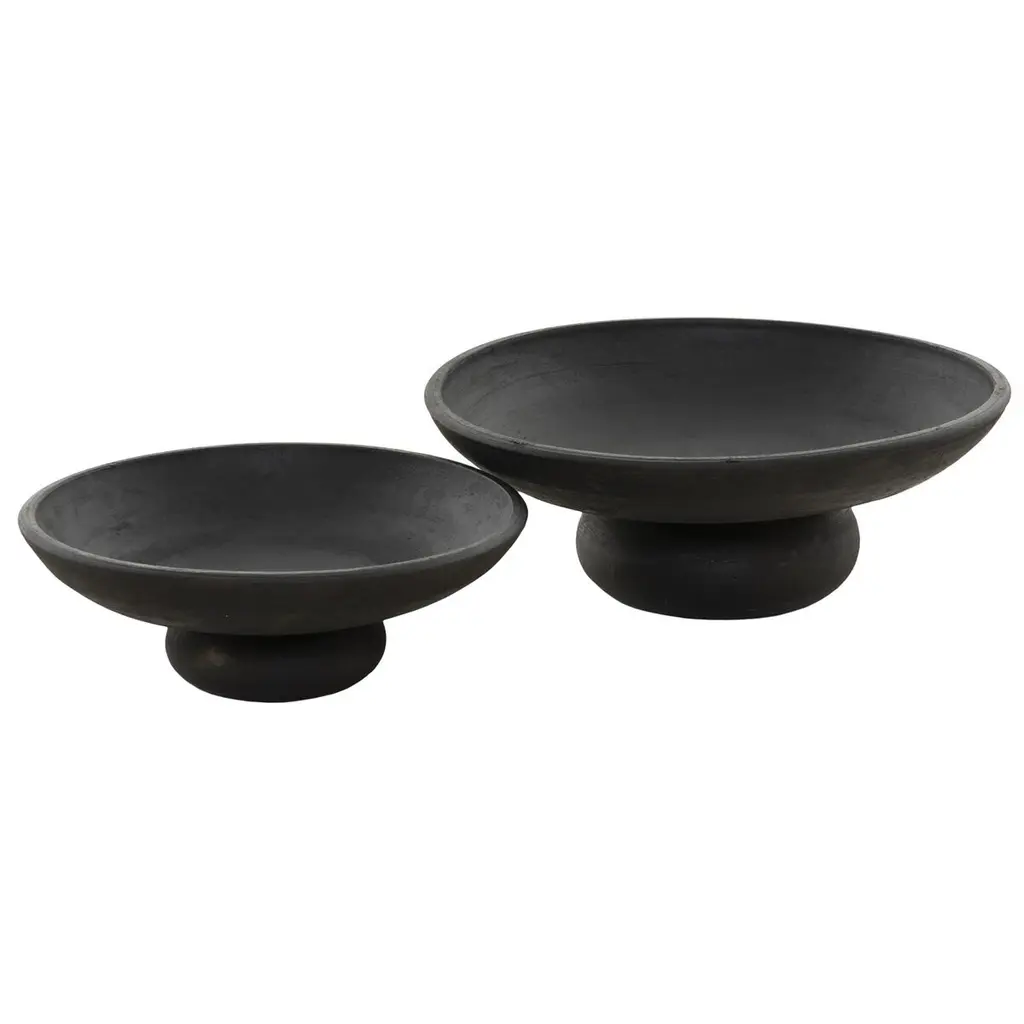 Hand-thrown clay ensures each piece in this pair of bowls has unique character, featuring a flattened pedestal base design. Not water-tight; for decorative use only.