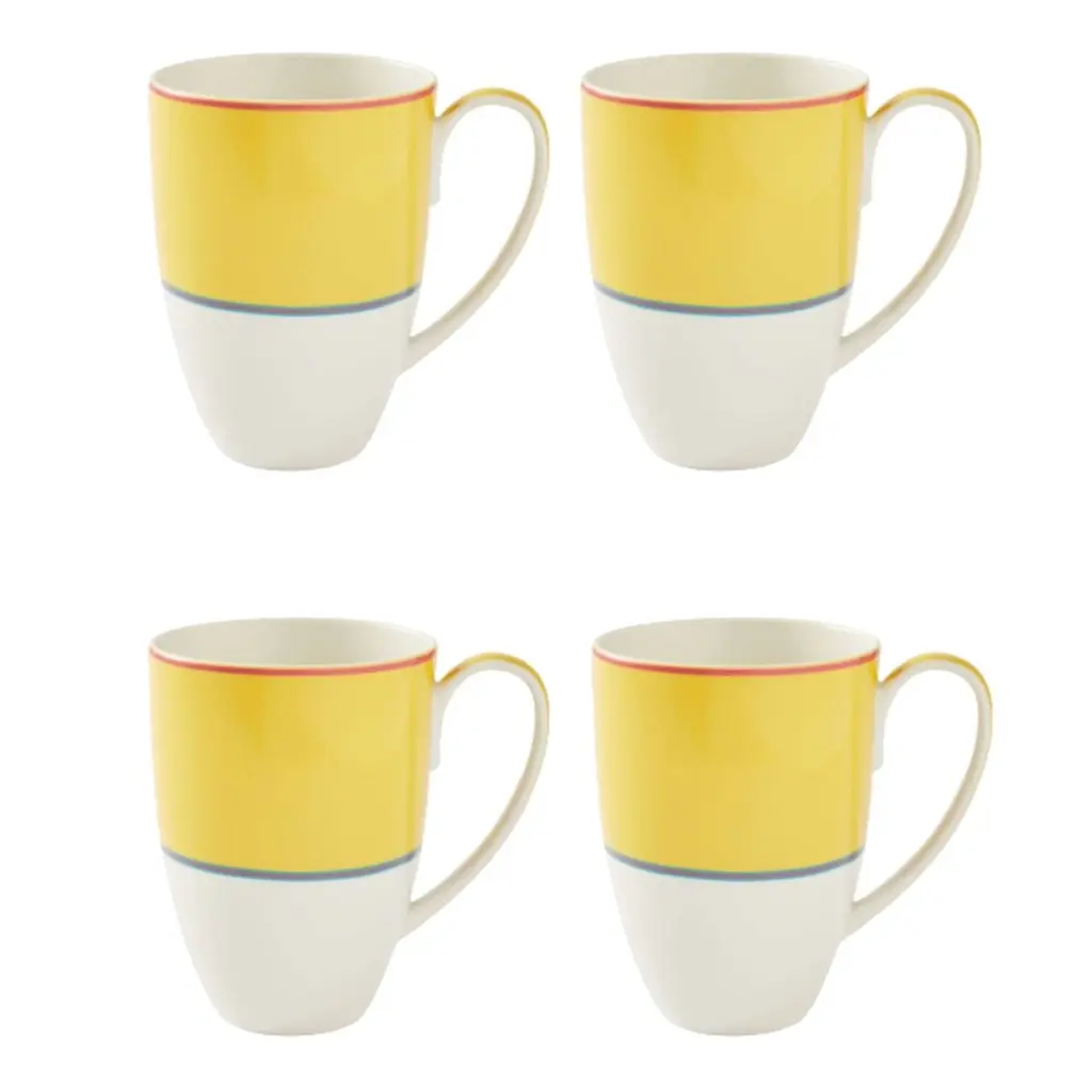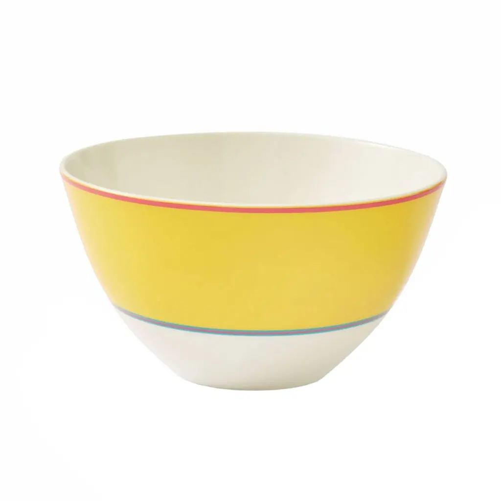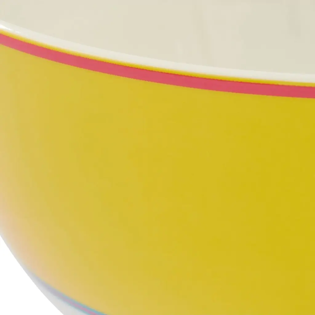 From breakfast and brunch to after-dinner dessert, add a cheerful touch to your table with these vibrant set of 4 bowls. Part of the colorful Calypso collection, each bowl is adorned with a sunny color on the outside, accented with bands. Layer with the matching dinner plates and salad plates or create a striking mix and match tablescape with the other colors in the Calypso collection. Perfect for every occasion, these bowls are dishwasher safe and microwave safe.