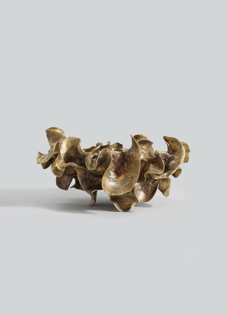 Saffron Bowl in Brass, Viya by Vikram GoyalWith moniker’s such as red gold, exquisite thread or golden light, saffron captivates us all. Ancient Romans prized them for their fragrance, Egyptians for their healing touch, and Mughals for their culinary alchemy. More than just a flavour, saffron threads hold secrets of ancient Indian medicine. From spice routes to royal courts, it now finds new expression in our collection of contemporary bronzed objects.Bowl in brass. Handmade in IndiaProduct DetailsMaterial: BrassSize: 15"L x 12"W x 6.25"H 38.1 L x 30.5 W x 15.9 H cmWeight: 7.35 kg 16.17 lbsNumber of Pieces: 1 BowlSKU: VBO2201This product has been handcrafted by local artisans. As such, slight variations are a testament to the unique character of a piece made by hand.