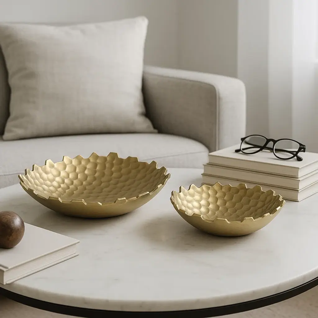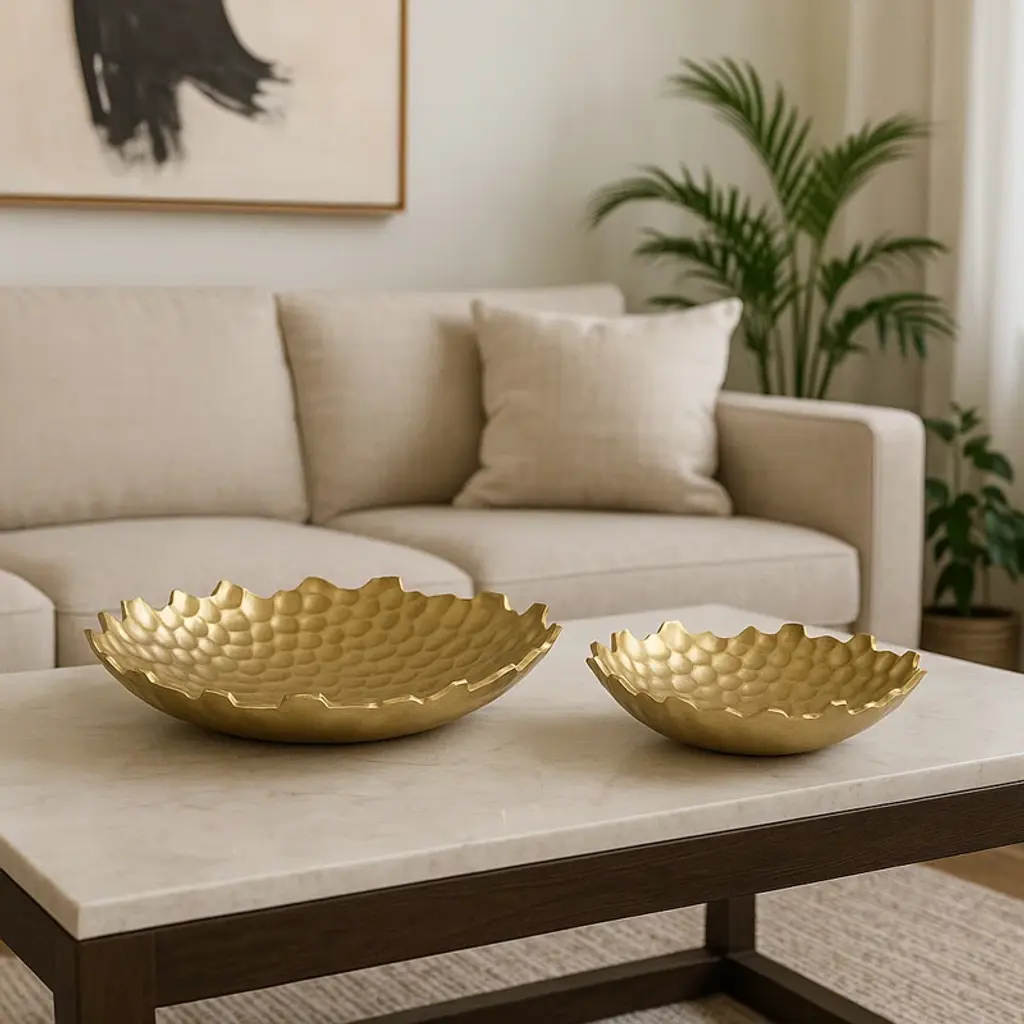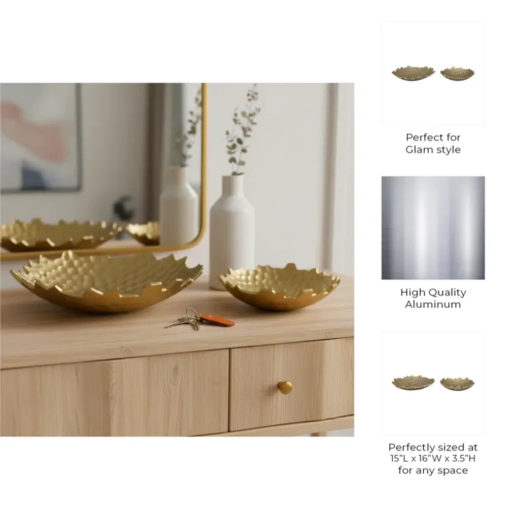 Sagebrook Home Arinda Home Artisanal Ceramic Bowls, Serene Golden Hue, Set Of 2, Decorative Home Accent Bowls, Ideal For Modern Home Décor, Charming And Spacious