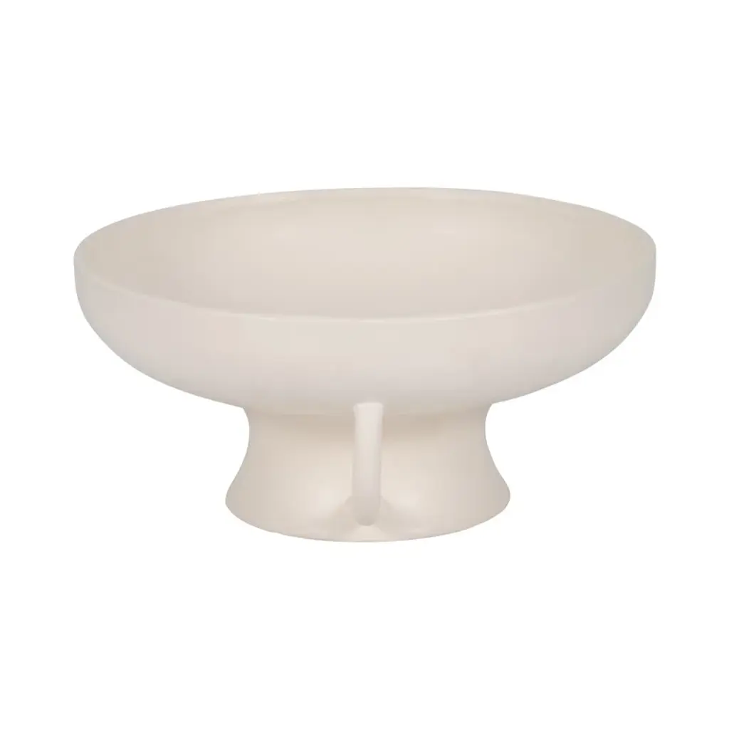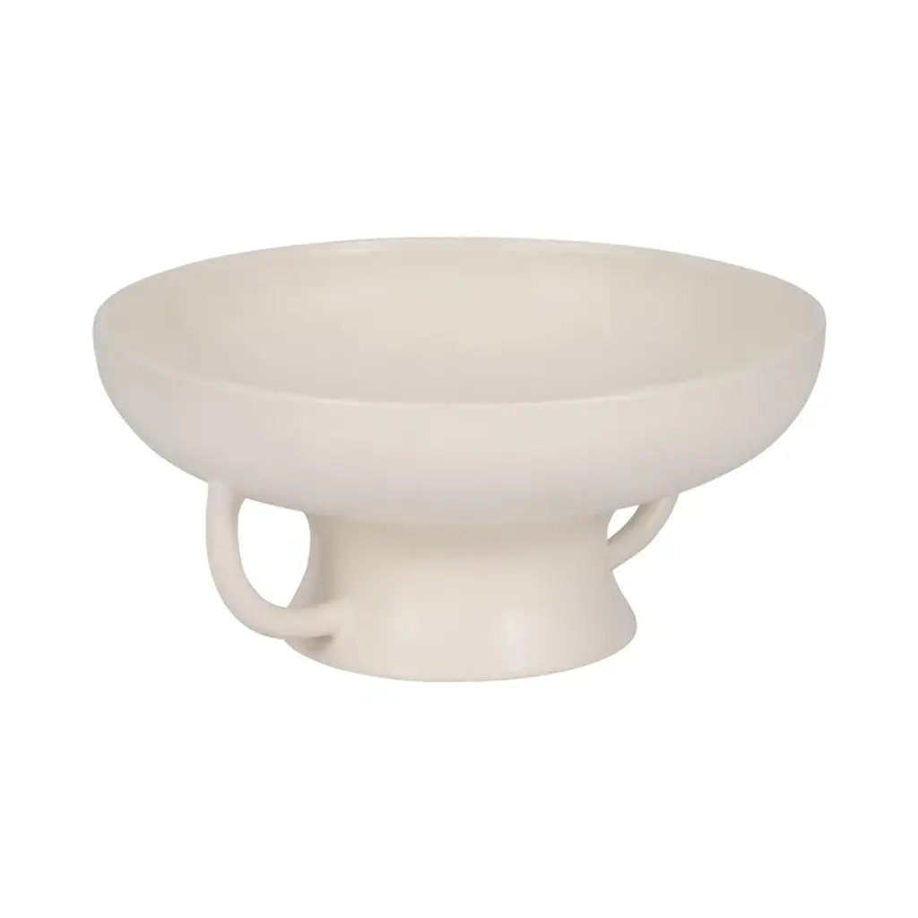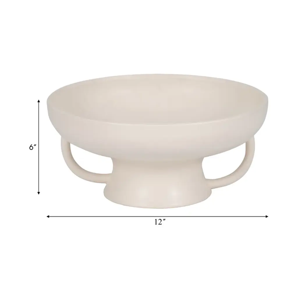 Sagebrook Home Joaquin Ceramic 12" Bowl With Handles On Stand - Elegant Cotton White