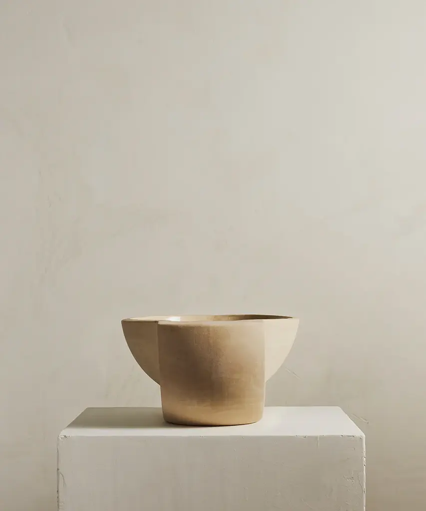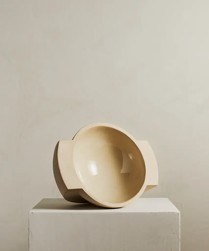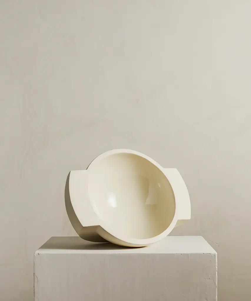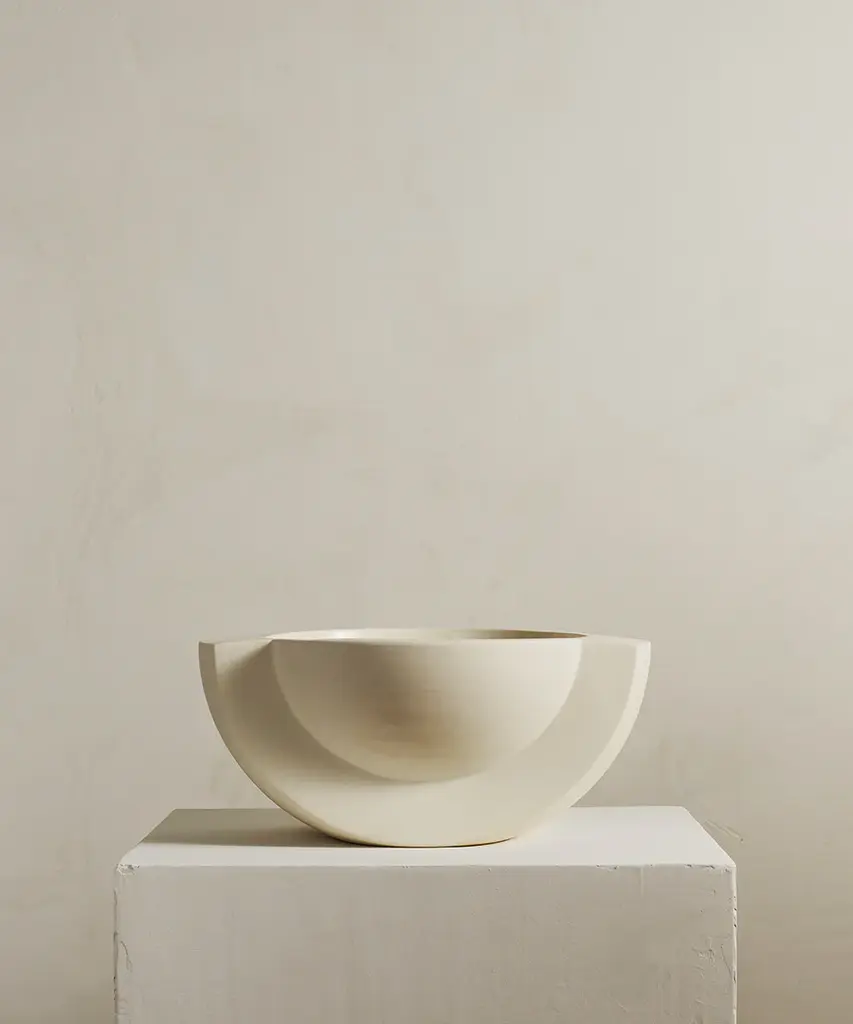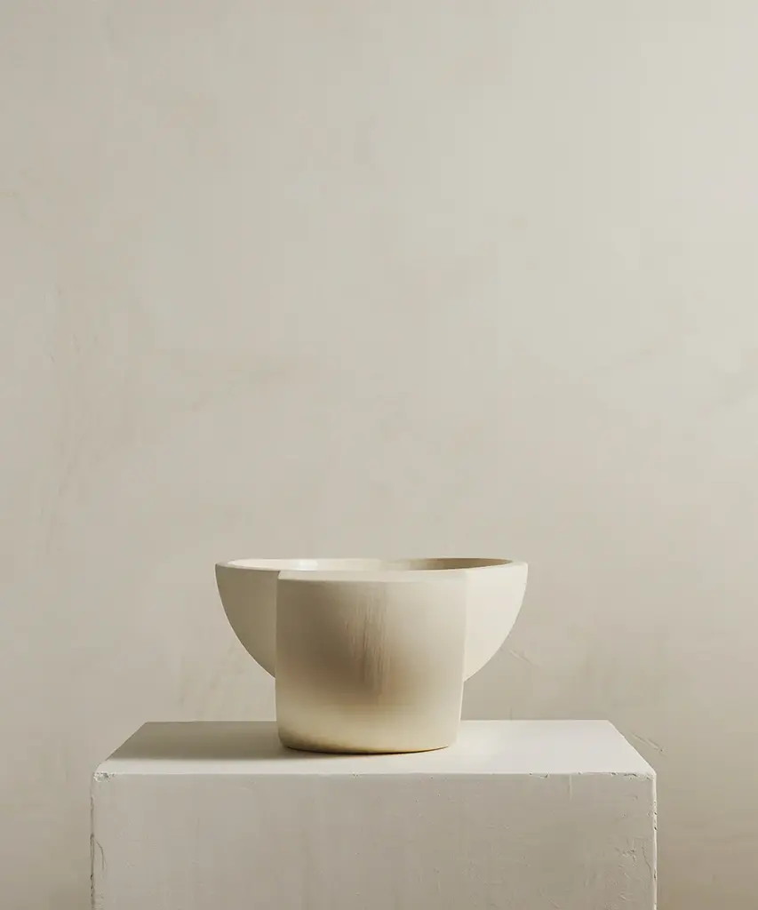 A ceramic centerpiece bowl, inspired by planetary forms. Saturn harnesses the raw qualities of the material to create an object that is as beautiful as it is useful. Food safe, the bowl is perfect for fruit. Available in two colors - snow and sand. Designed by Brooklyn-based studio, Light + Ladder. Produced by a family-run, zero-waste facility in Vermont.