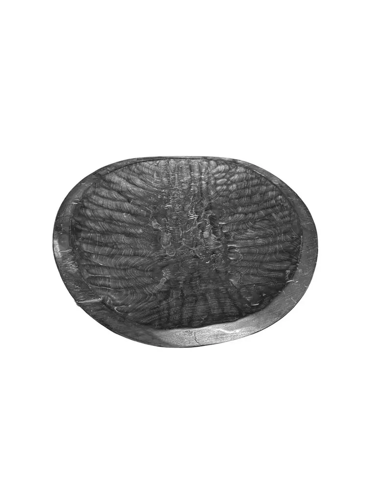 A hand-crafted mango wood bowl with hand-hewn detailing along the basin. The bowl was cut from a much larger slab of mango wood and features wonderful mix of wood textures. To achieve the rich black colour the bowl was burnt three times and finished with a clear coat. The bowl is curved and organic in shape.